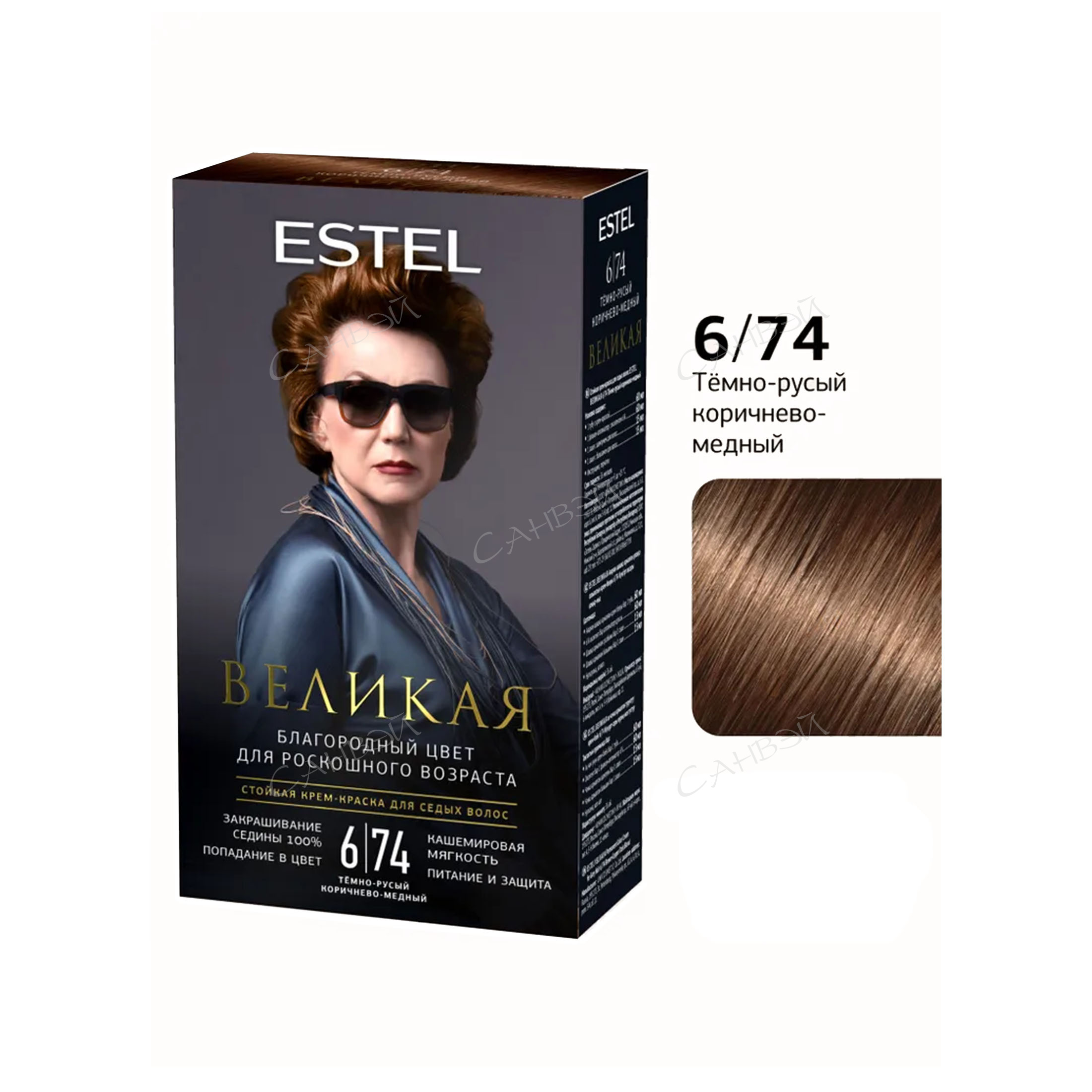 Набор крем-краска ESTEL ВЕЛИКАЯ 60 мл и окисляющая эмульсия 9% 60 мл подходит для всех типов волос, обеспечивает равномерный и глубокий цвет на натуральных, окрашенных, мелированных, осветлённых и седых волосах. Формула перманентной стойкой краски разработана для тех, кто ценит яркий цвет и одновременно хочет сохранить мягкость, гладкость и ухоженный вид. В состав аммиачного тонирующего красителя входит протеин кашемира, который разглаживает поверхность и возвращает мягкость прядям.