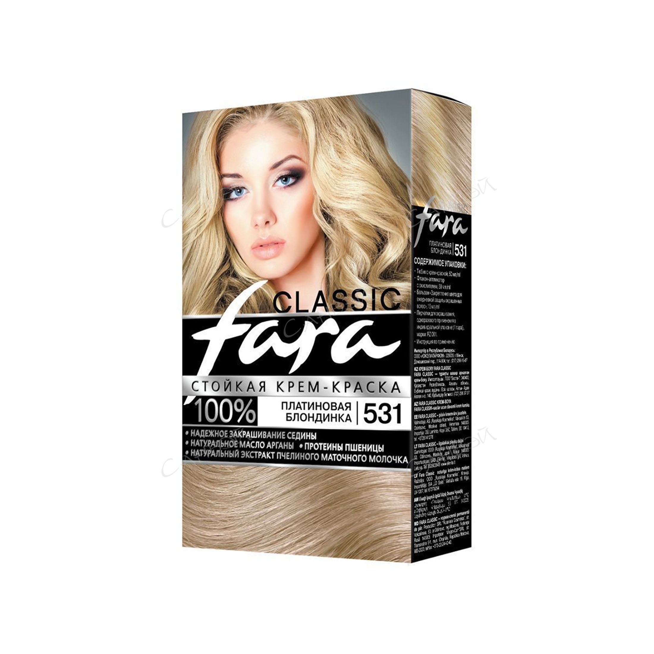Краска Fara Classic 531 платиновая блондинка великолепно ложится на любой базовый цвет волос, отлично прокрашивает седину, придавая вашим волосам неповторимый шарм и элегантность классического черного оттенка.