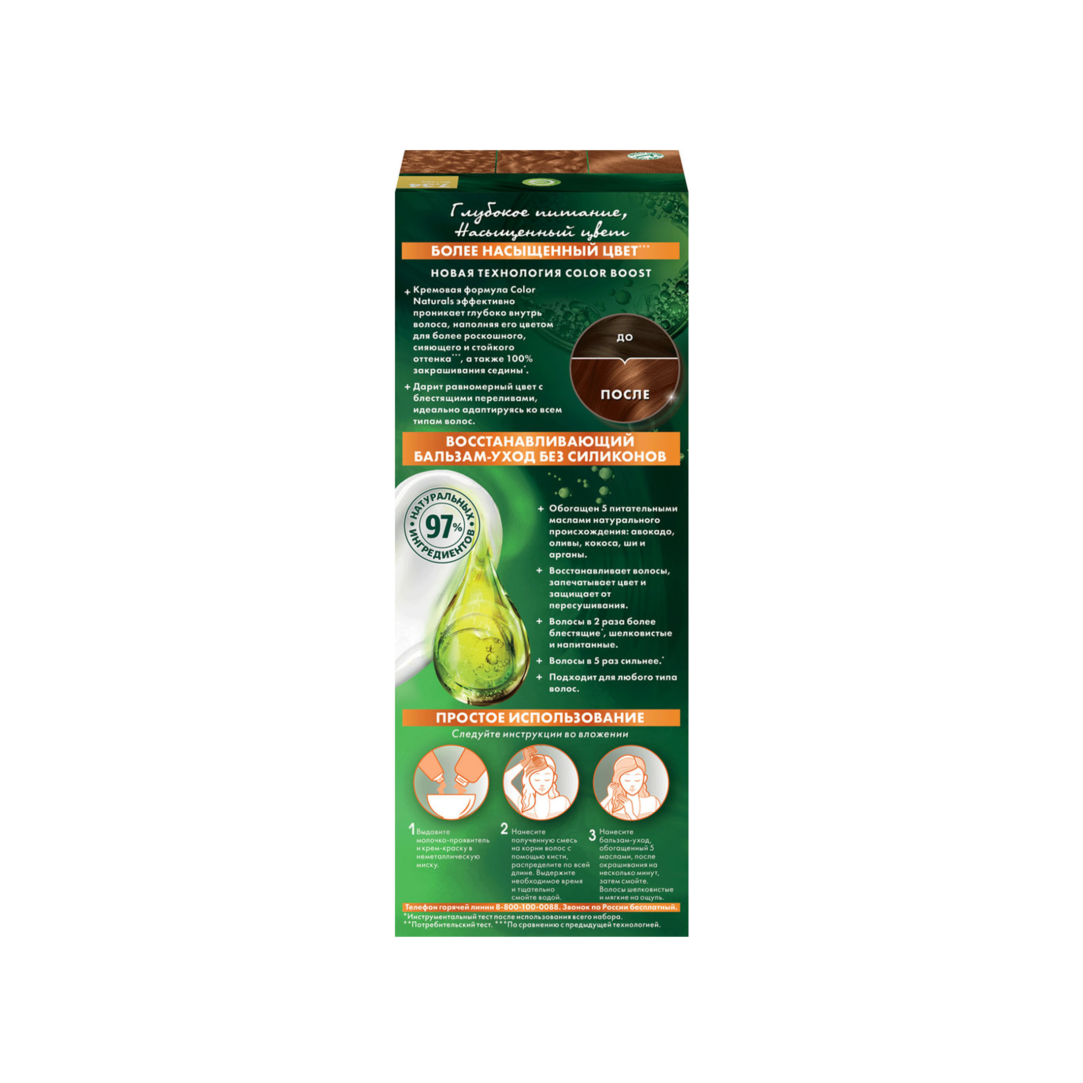 стойкое окрашивание, закрашивание седины, питание, блеск, увлажнение