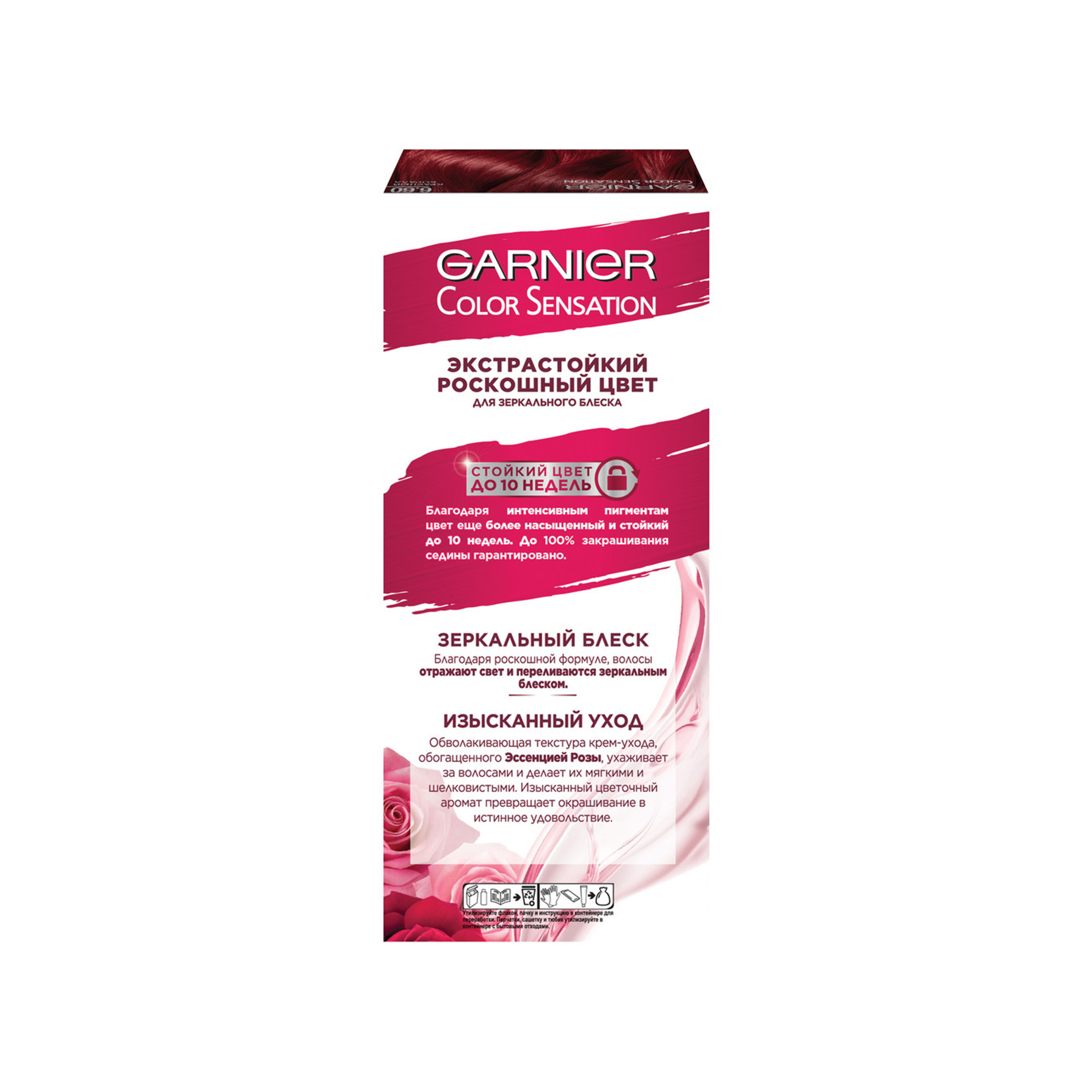 Garnier Стойкая крем-краска для волос Color Sensation оттенок 6.60 Красный коралл, 112 мл из магазина Санвэй благодаря интенсивным пигментам и эссенции розы цвет еще более насыщенный и стойкий до 10 недель (Инструментальный тест), а волосы отражают свет и переливаются зеркальным блеском.