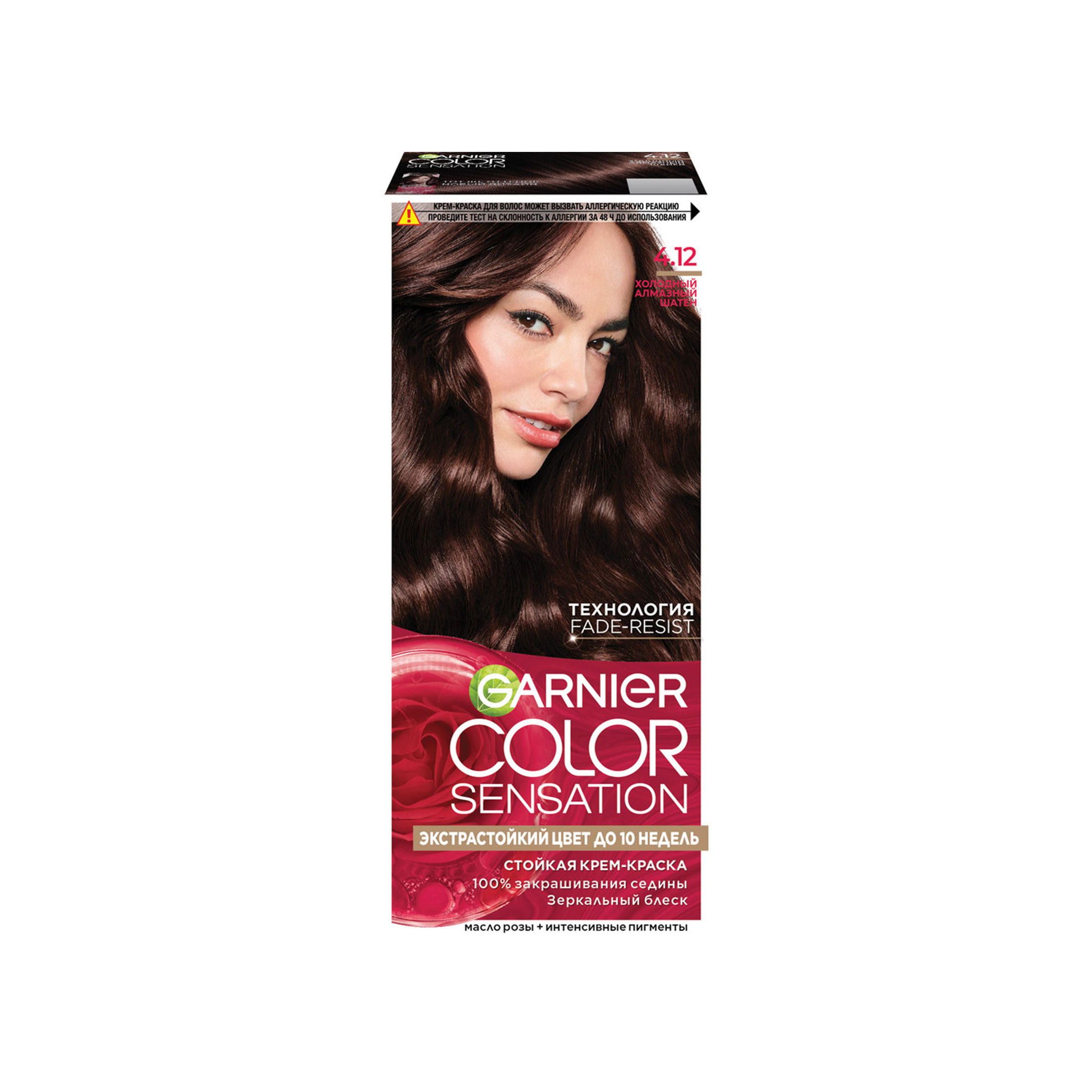 Garnier Стойкая крем-краска для волос "Color Sensation, Роскошь цвета" оттенок 4.12, Холодный Алмазный Шатен, 112 мл из магазина Санвэй благодаря интенсивным пигментам и эссенции розы цвет еще более насыщенный и стойкий до 10 недель (Инструментальный тест), а волосы отражают свет и переливаются зеркальным блеском.