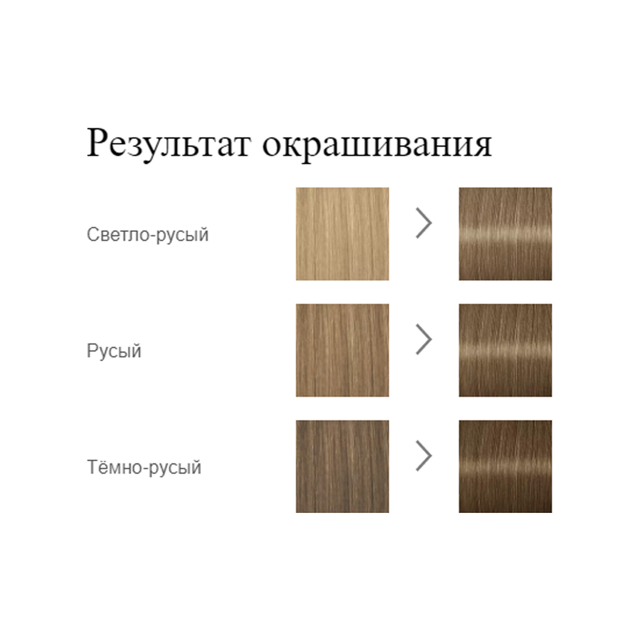 - Окрашивающий Крем: Aqua (Water, Eau) · Cetearyl Alcohol · Ammonium Hydroxide · Coconut Alcohol · Sodium Laureth-6 Carboxylate · Sodium Myreth Sulfate · Ammonium Sulfate · Succinic Acid · Bis-Diisopropanolamino-PG-Propyl Dimethicone/Bis-Isobutyl PEG-14 Copolymer · Acrylamidopropyltrimonium Chloride/Acrylates Copolymer · Coco-Glucoside · Paraffinum Liquidum (Mineral Oil, Huile Minérale) · Glyceryl Oleate · Arginine · Lysine HCl · Ceteareth-12 · Ceteareth-20 · Parfum (Fragrance) · Toluene-2,5-Diamine Sulfate · Potassium Hydroxide · Sodium Sulfite · Sodium Silicate · Resorcinol · Etidronic Acid · Ascorbic Acid · Sodium Chloride · Butyloctanol · Citric Acid · Polysorbate 20 · Linalool · Phenoxyethanol · m-Aminophenol · Benzyl Salicylate · Lactic Acid · 2-Amino-4-Hydroxyethylaminoanisole Sulfate · Citronellol · Geraniol · Limonene · 2-Methylresorcinol · 4-Chlororesorcinol · Sodium Benzoate · 4-Amino-2-Hydroxytoluene · Methylparaben · Ethylparaben