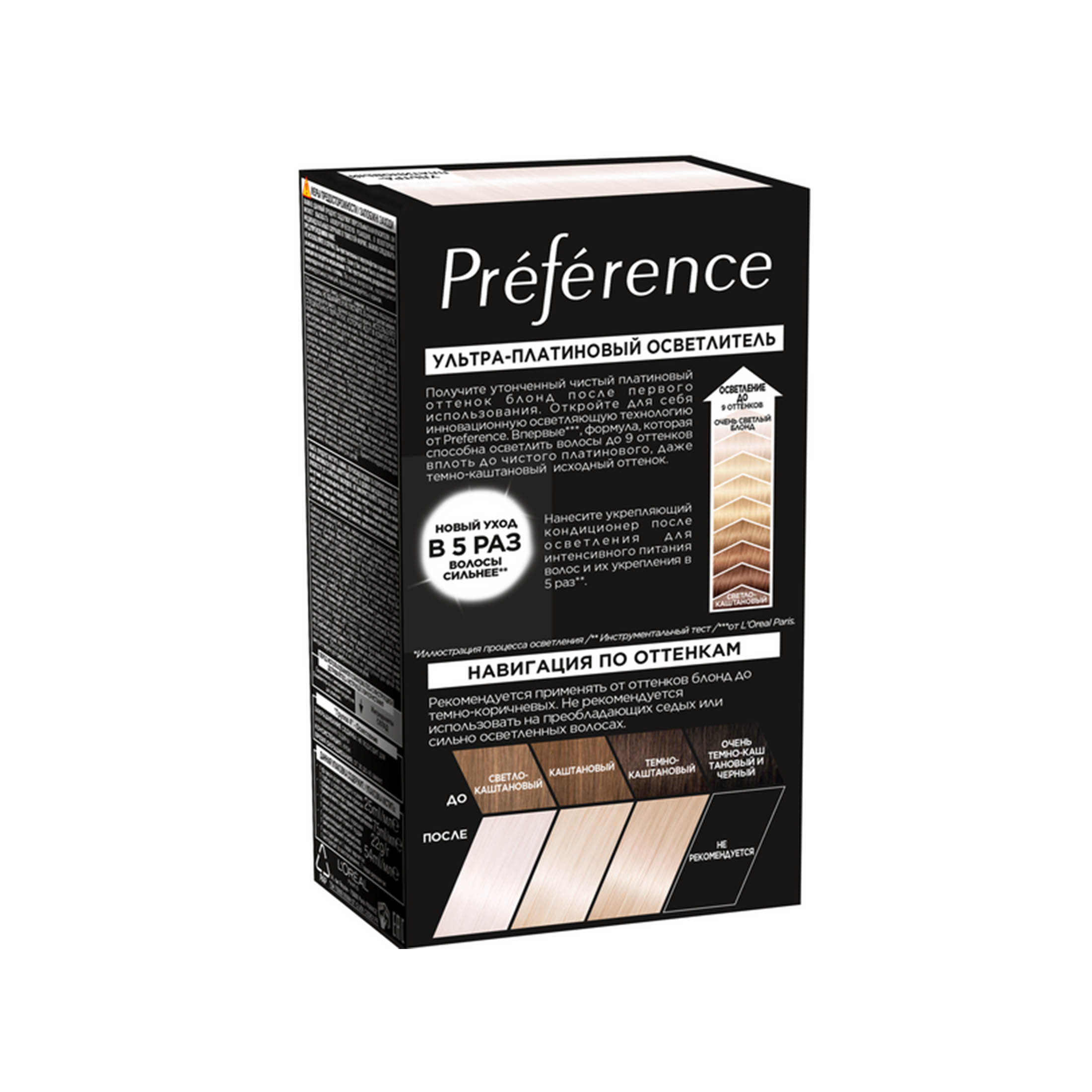 - Осветлитель Preference содержит новый укрепляющий кондиционер, интенсивно питающий волосы и визуально уменьшающий повреждения
