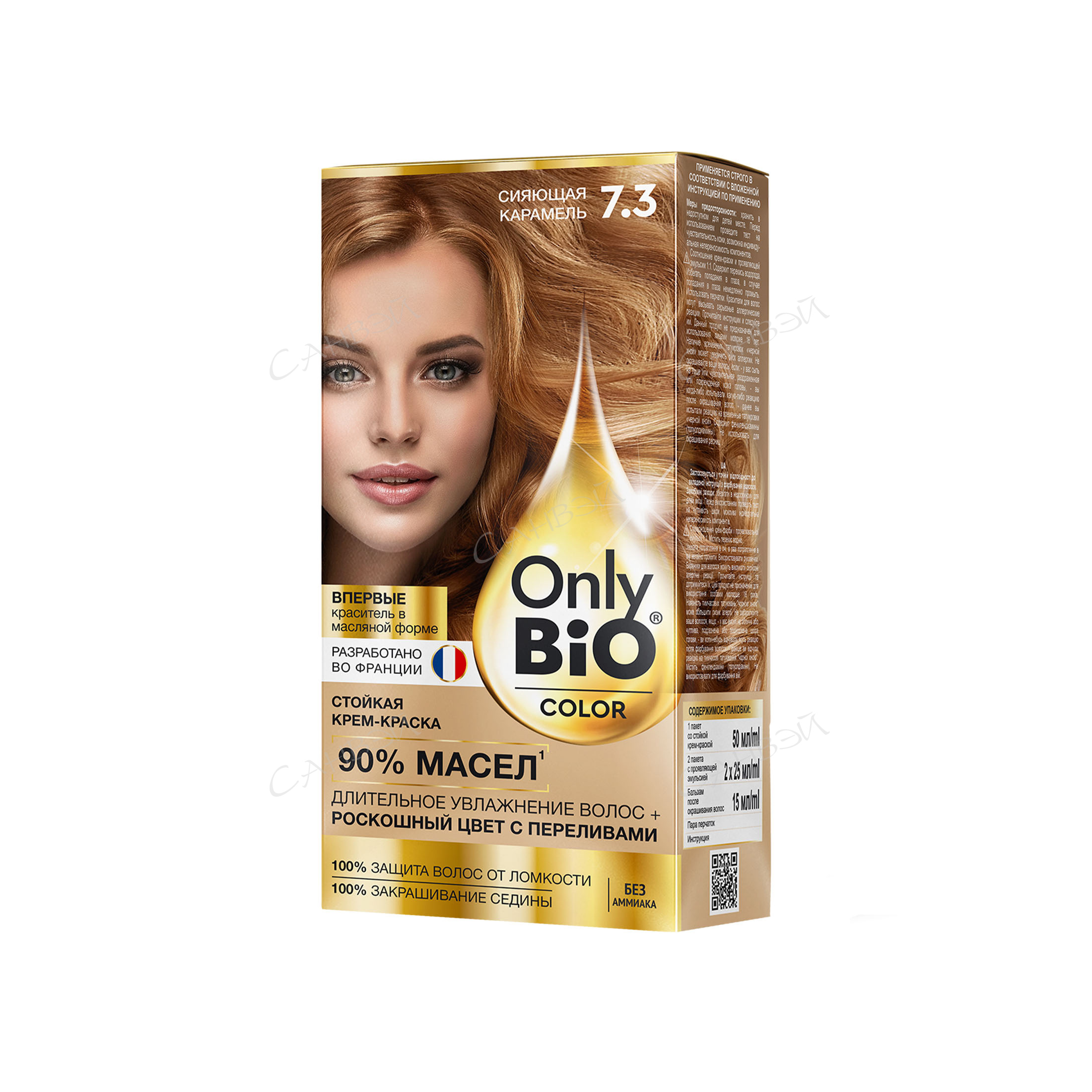 Стойкая крем-краска для волос Only Bio 7.3 Сияющая карамель - это настоящее открытие в колористике родом из Франции. Впервые краситель представлен в масляной форме, интенсивно насыщен пигментами и обеспечивает превосходное стойкое и бережное окрашивание.