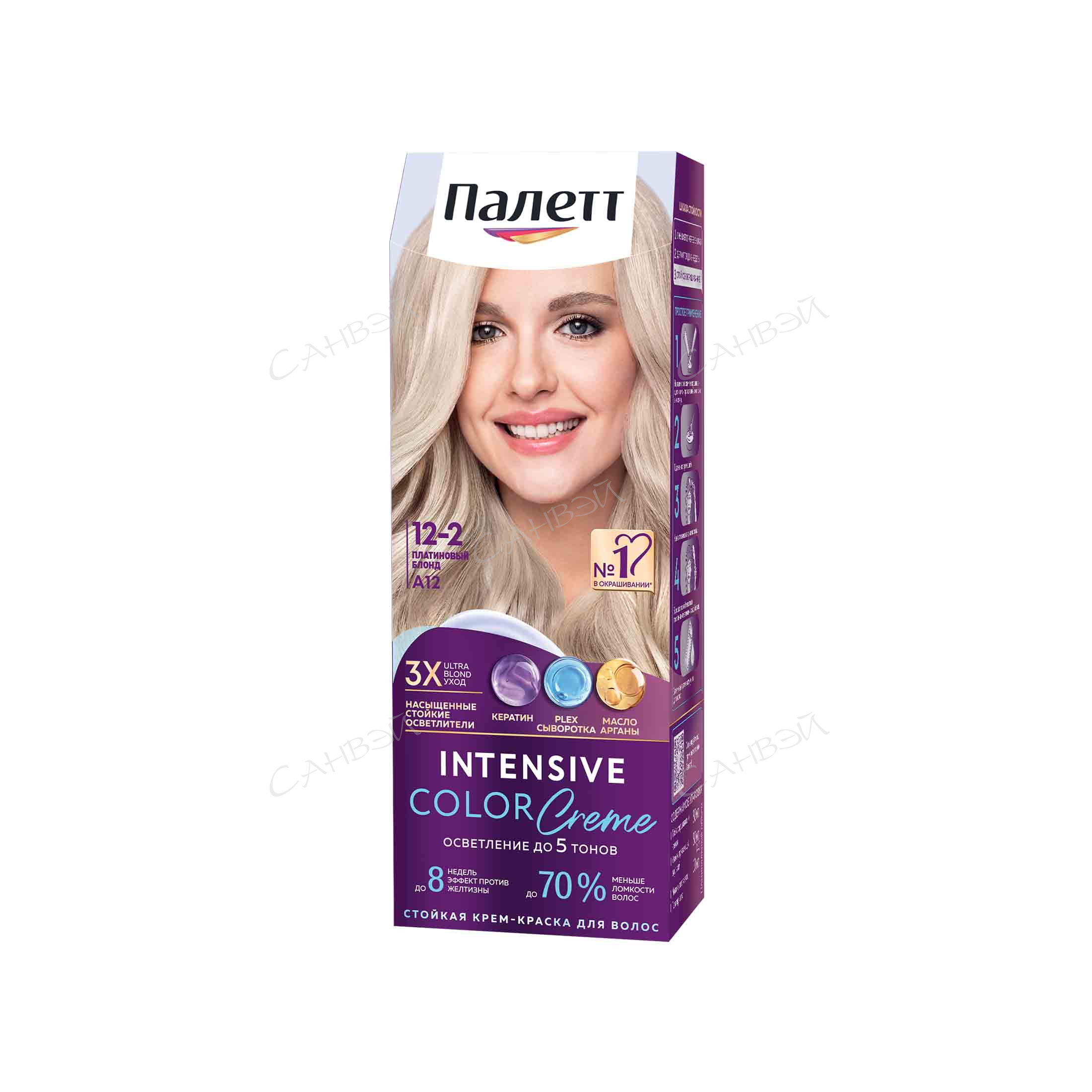Палетт Краска для волос тон A12 (12.2) Платиновый блонд 110 мл благодаря тройной системе ухода обеспечивает бережное окрашивание.
