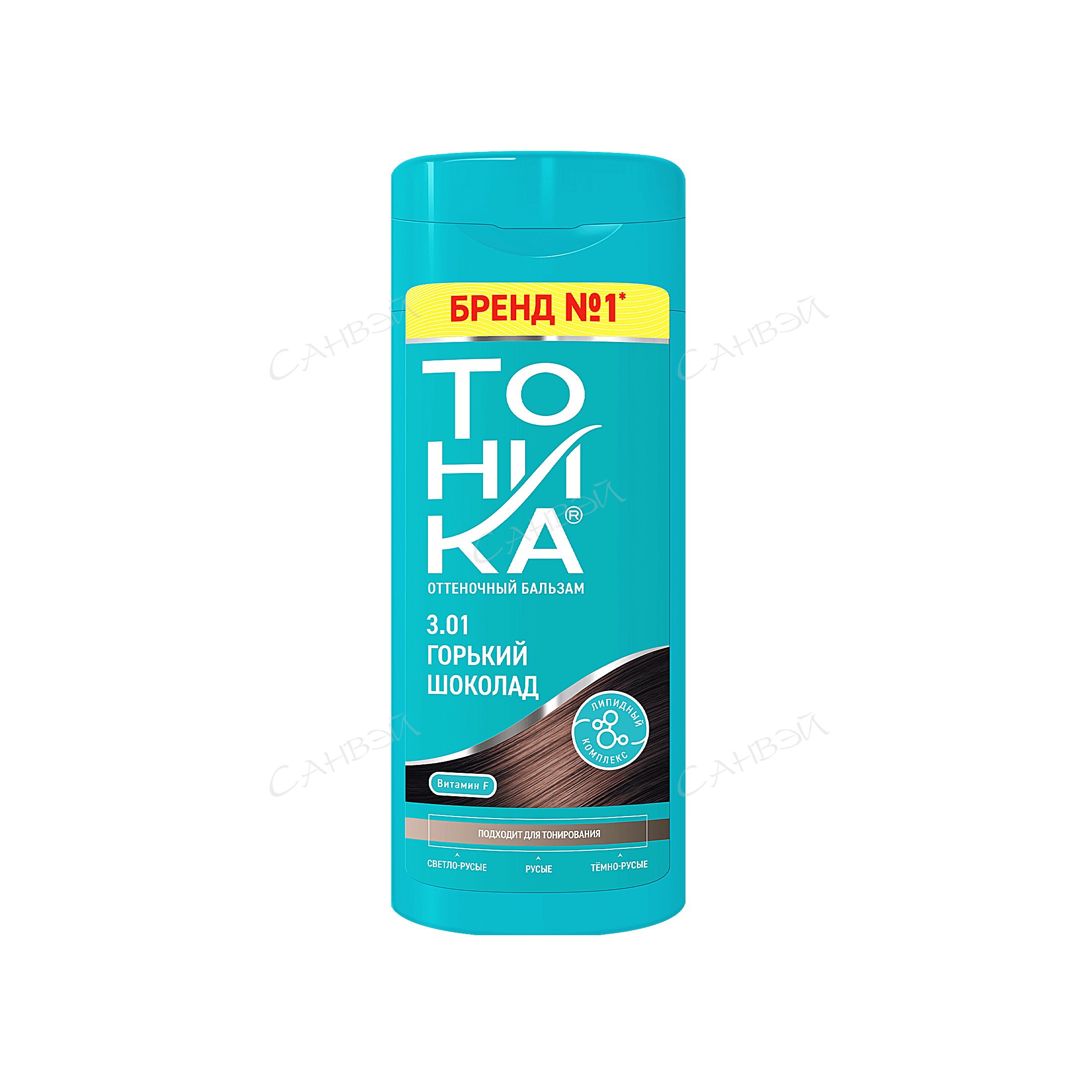 Оттеночный бальзам для волос Тоника тон 3.01 Горький шоколад 150 мл из магазина Санвэй усилит интенсивность цвета натуральных волос, придаст им выразительный оттенок, переливающийся на солнце. Натуральные оттенки - русые и каштановые от холодного до теплого, медные и красноватые - направлены на придание интенсивности цвета натуральных волос, поддержание цвета между стойким окрашиванием и тонирование отросших корней.