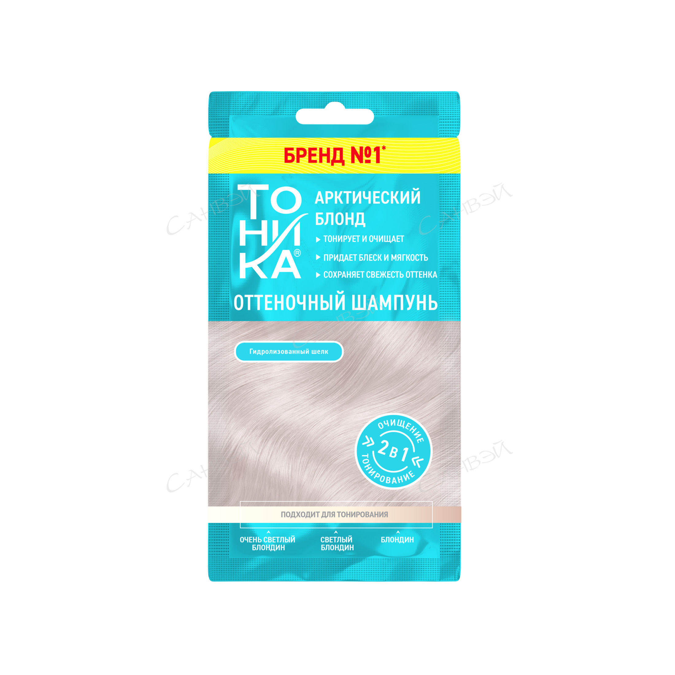 Холодный как лёд, арктический блонд — это ультрасовременный и дерзкий оттенок, один из самых светлых и холодных оттенков блонда. Подарите своим волосам идеальный уход с новыми оттеночными шампунями Тоника! Мягкое очищение, деликатное тонирование и интенсивное питание в одном компактном саше. Шампунь не только придает волосам гладкость и легкость в расчесывании, но и сохраняет яркость цвета до 4 раз мытья головы.