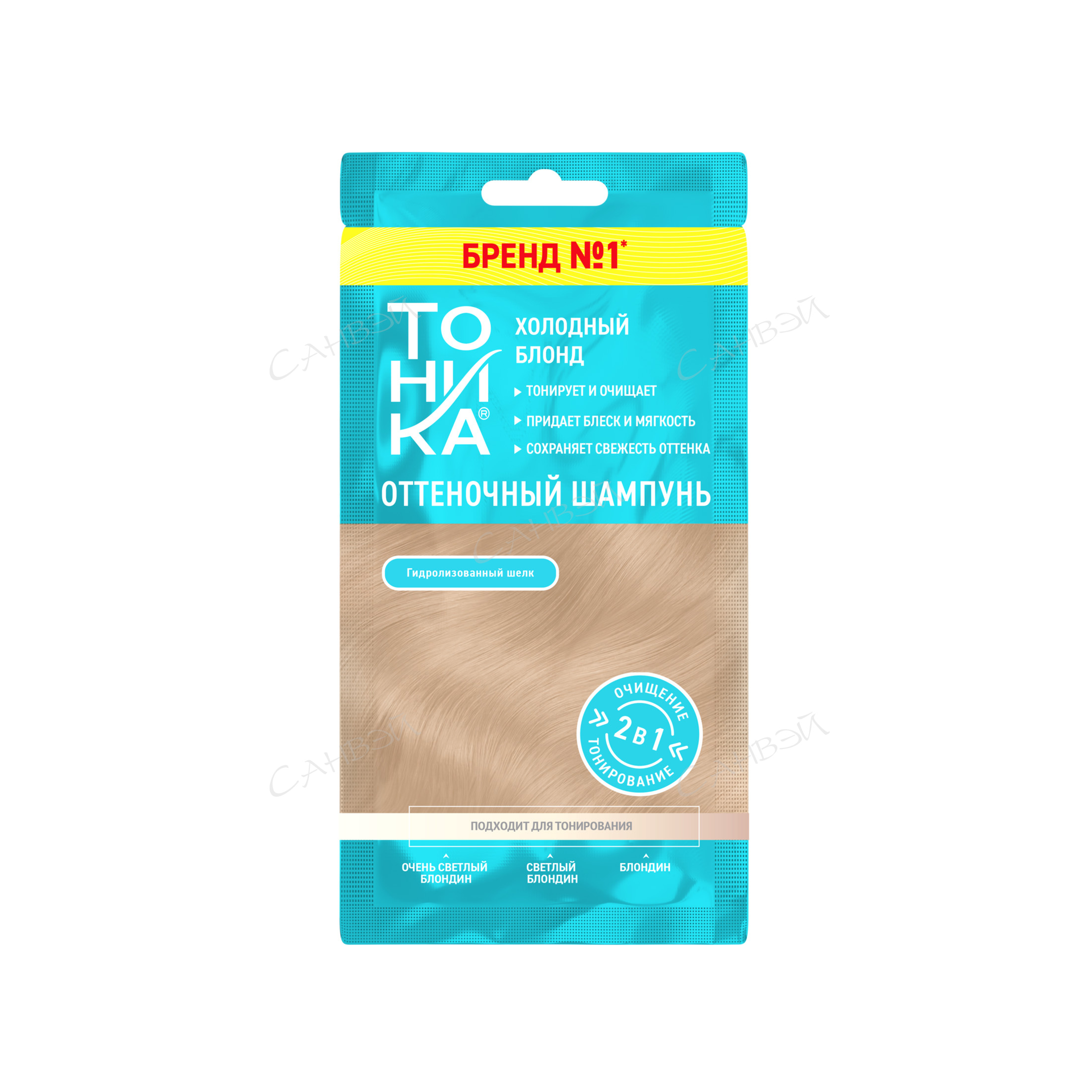 Стильный и модный, холодный блонд придаёт волосам насыщенный и универсальный цвет без золотистых оттенков. Подарите своим волосам идеальный уход с новыми оттеночными шампунями Тоника! Мягкое очищение, деликатное тонирование и интенсивное питание в одном компактном саше. Шампунь не только придает волосам гладкость и легкость в расчесывании, но и сохраняет яркость цвета до 4 раз мытья головы.