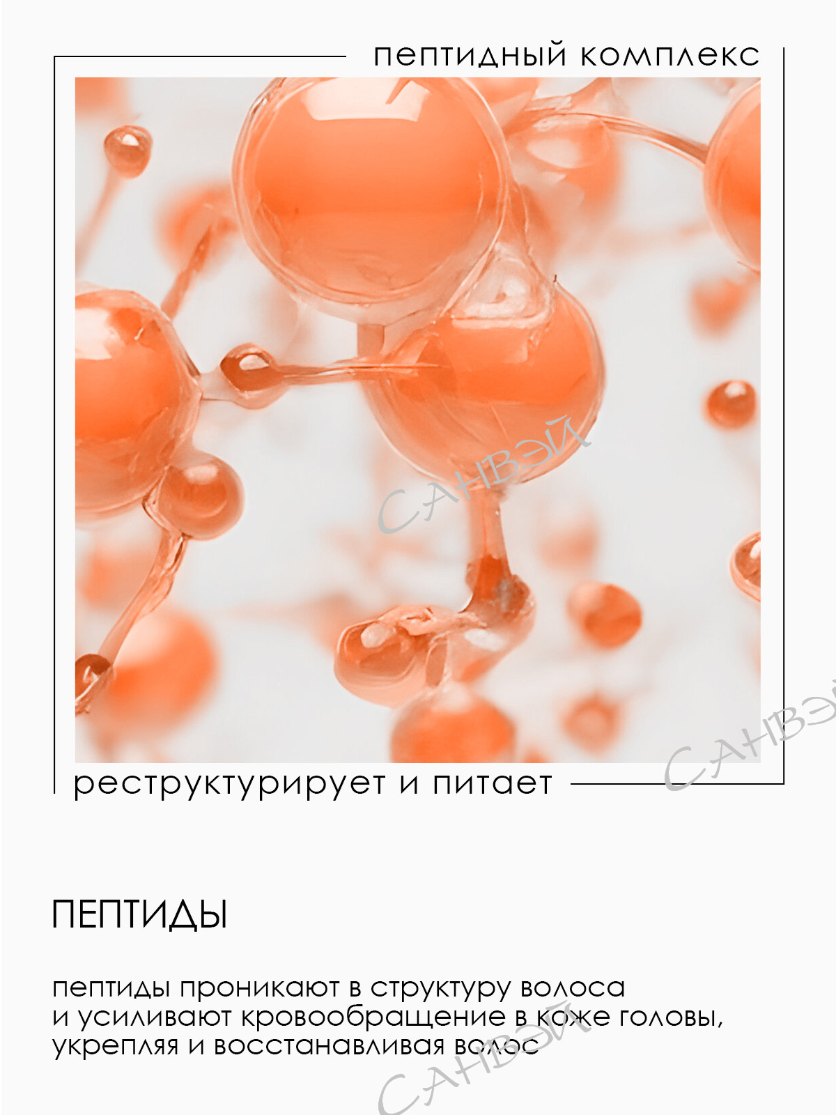 - Пептиды эффективно заполняют поврежденные участки волос, закрывают и запаивают чешуйки, препятствуя потере влаги, уплотняют волосяной стержень и увеличивают его толщину.