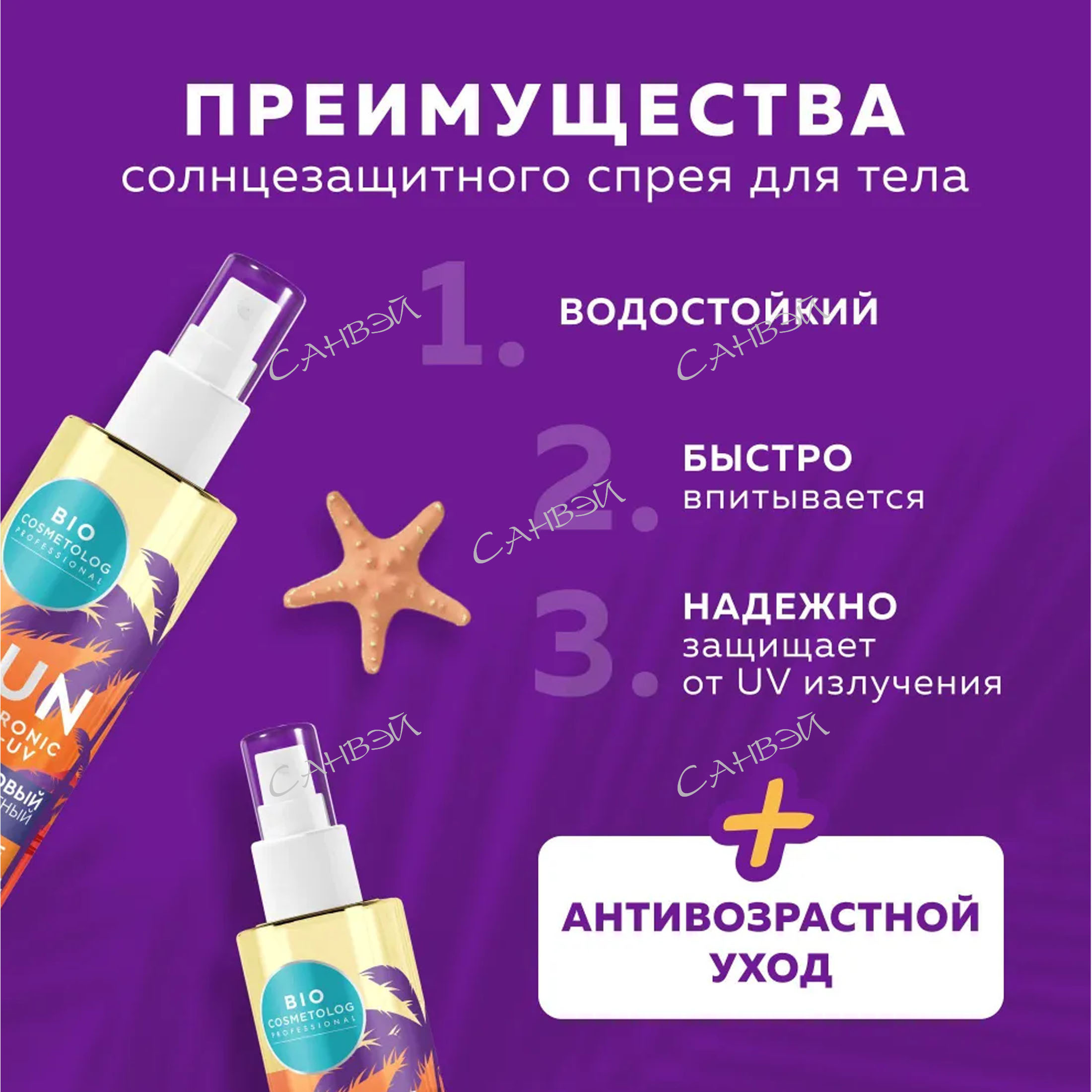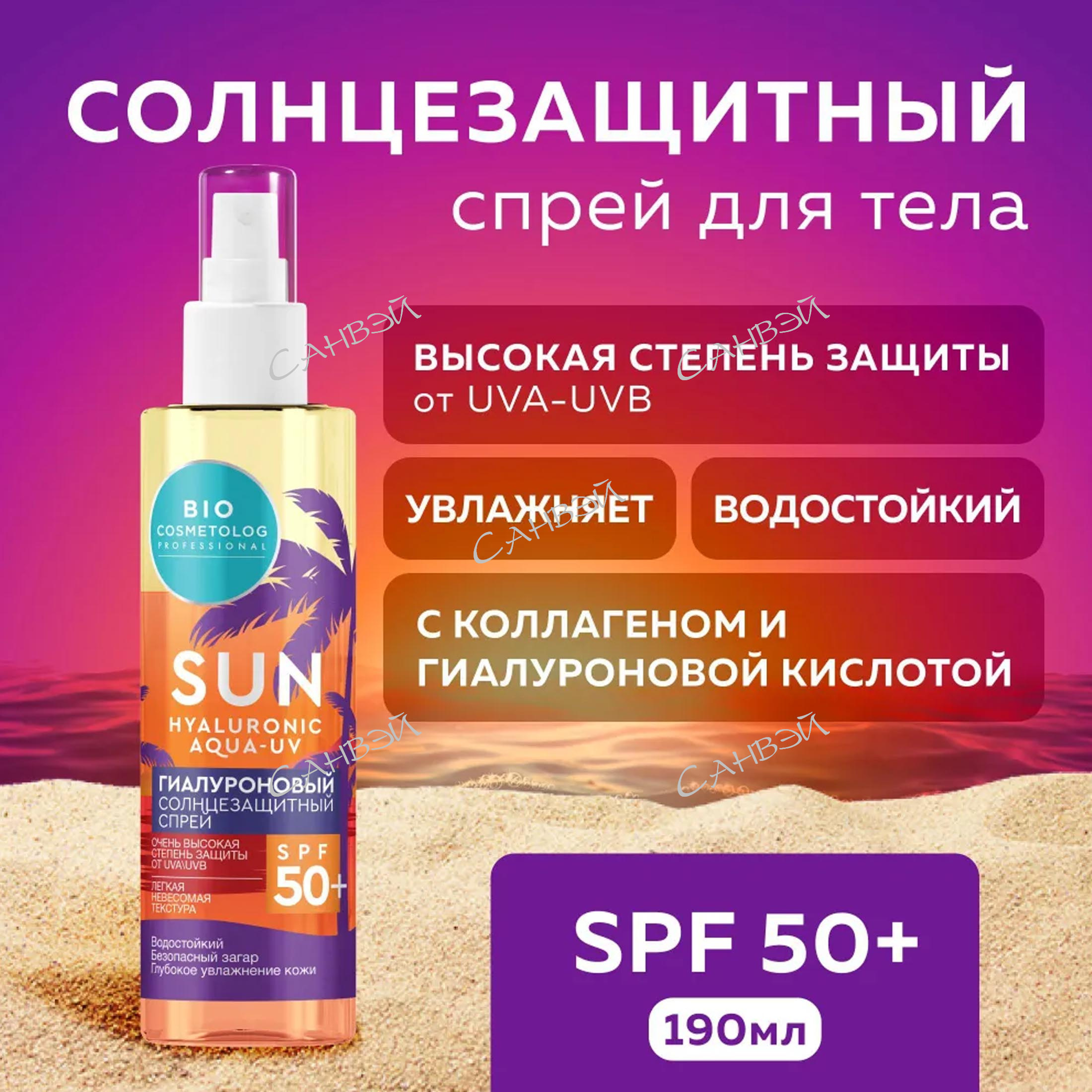 Гиалуроновый солнцезащитный спрей SPF 50+ серии Bio Cosmetolog Professional 190 мл в магазине Санвэй - это интенсивный флюид для кожи с высокой степенью защиты.