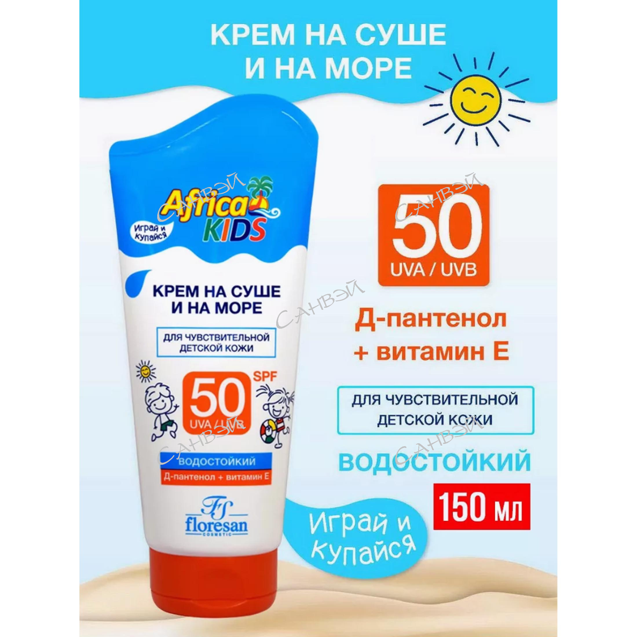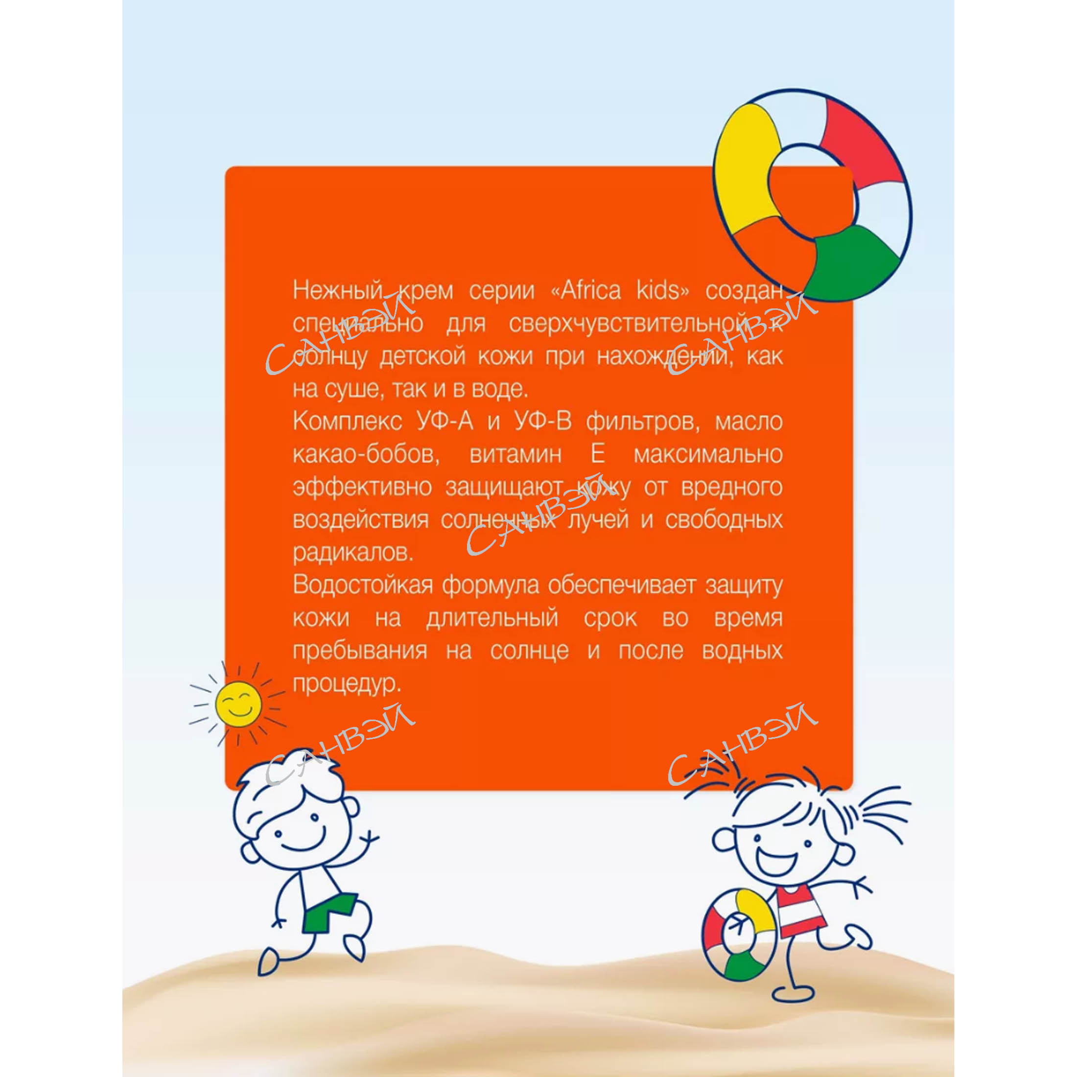 Крем для защиты от солнца на суше и на море SPF 50 Africa Kids оздан специально для сверхчувствительной к солнцу детской кожи при нахождении, как на суше, так и в воде.
