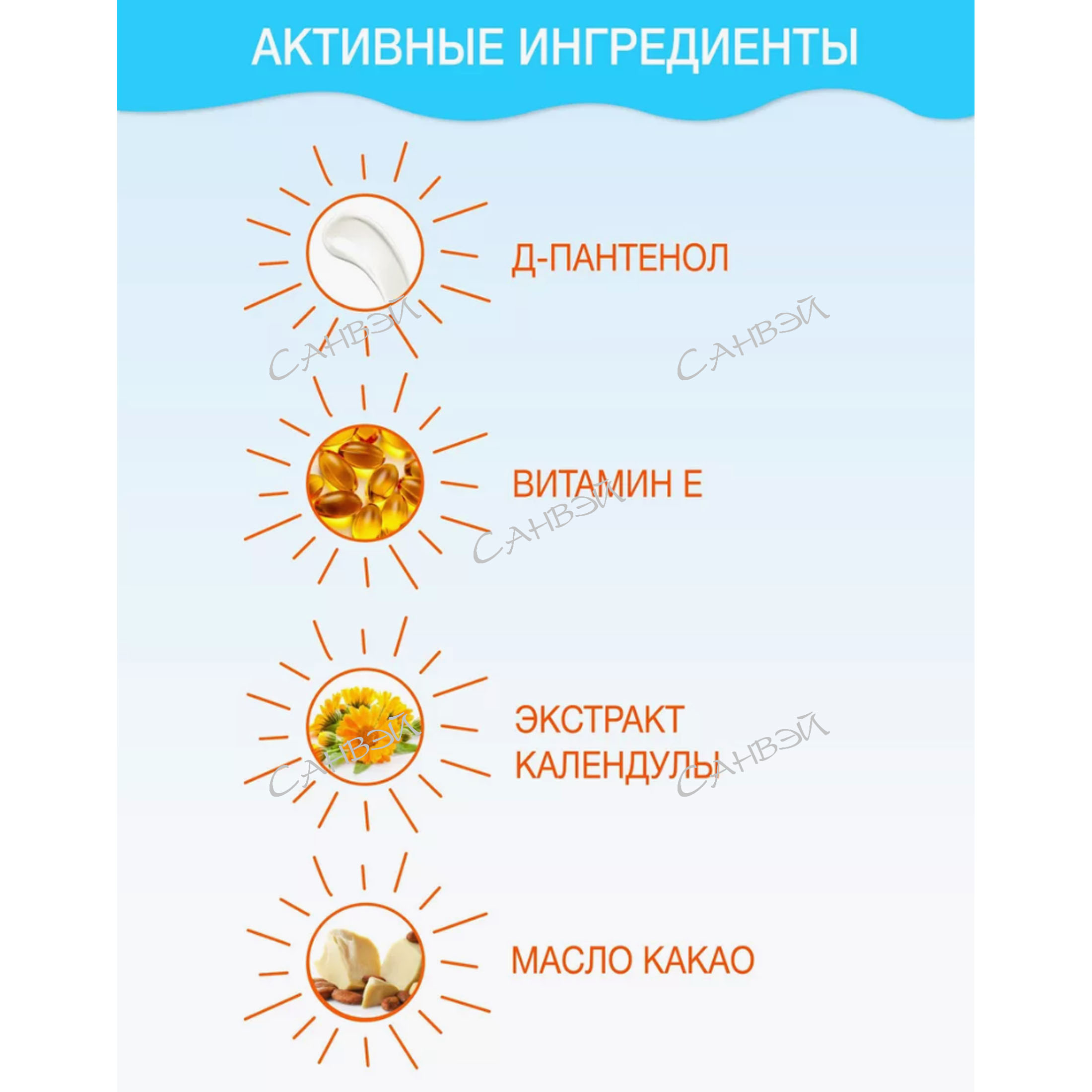 Aqua, Ethylhexyl Methoxycinnamate, Cetearyl Alcohol, Isopropyl Myristate, Paraffinum Liquidum, Ethylhexyl Triazone, Glycerin, Isopropyl Palmitate, Titanium Dioxide, Zinc Oxide, Panthenol (Д-пантенол), Tocopheryl Acetate (Витамин Е), Calendula Officinalis Extract (Экстракт календулы), Theobroma Cacao Seed Butter (Масло какао), Glyceryl Stearate, Ceteareth-20, Ceteareth-12, Cetyl Palmitate, PEG-100 Stearate, Ceteareth-6, Parfum, Phenoxyethanol, Methylparaben, Ethylparaben, Propylparaben, DMDM Hydantoin.