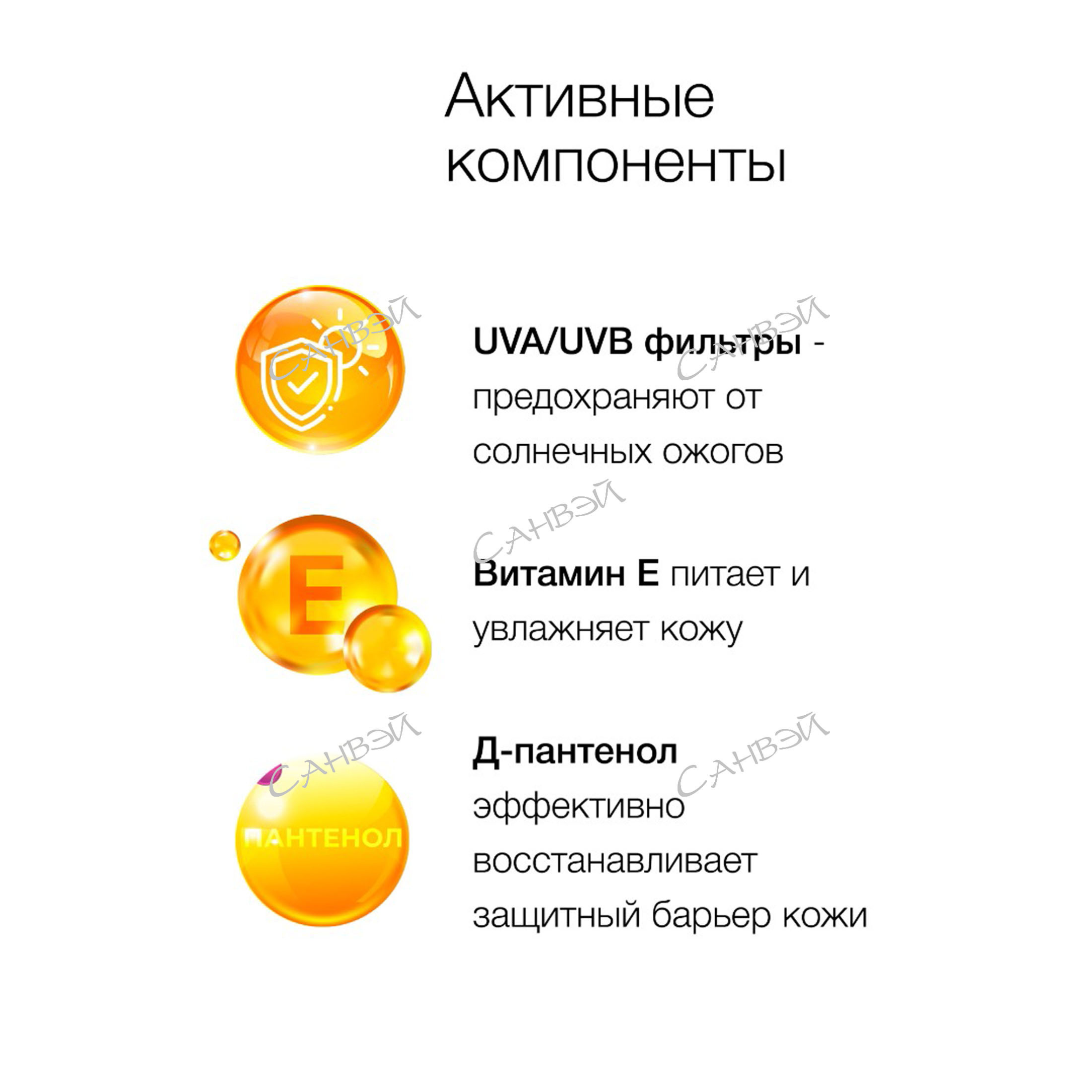 - Комплекс фотостабильных UVA/UVB фильтров отражает ультрафиолетовые лучи широкого спектра, надежно защищая кожу от возникновения солнечных ожогов и обезвоживания, вызванного солнечными лучами.
