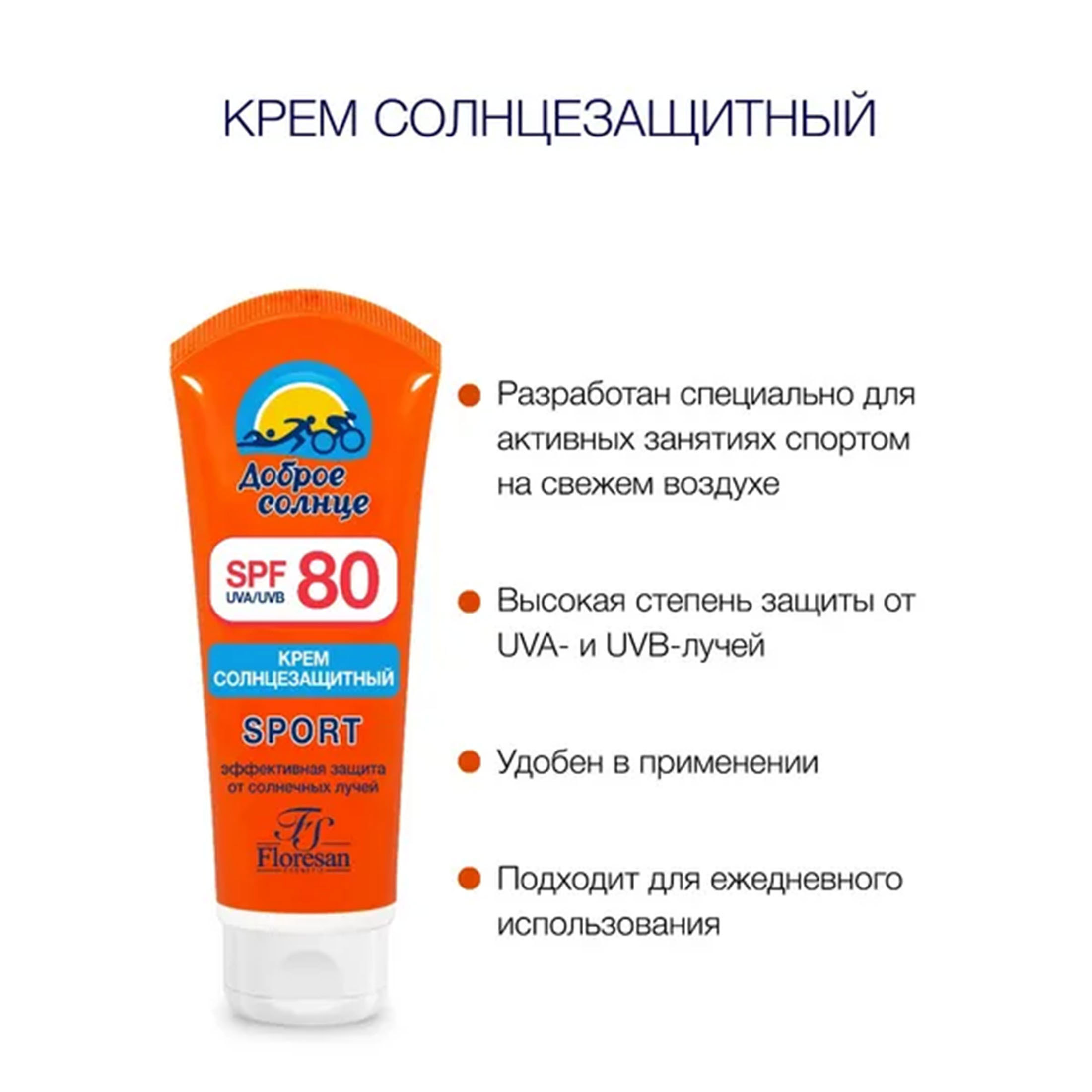 Floresan Sport Крем солнцезащитный SPF80, формула 109 60 мл из магазина Санвэй - при активных занятиях спортом на свежем воздухе, воспользуйтесь солнцезащитным кремом с высокой степенью защиты от UVA- и UVB-лучей.