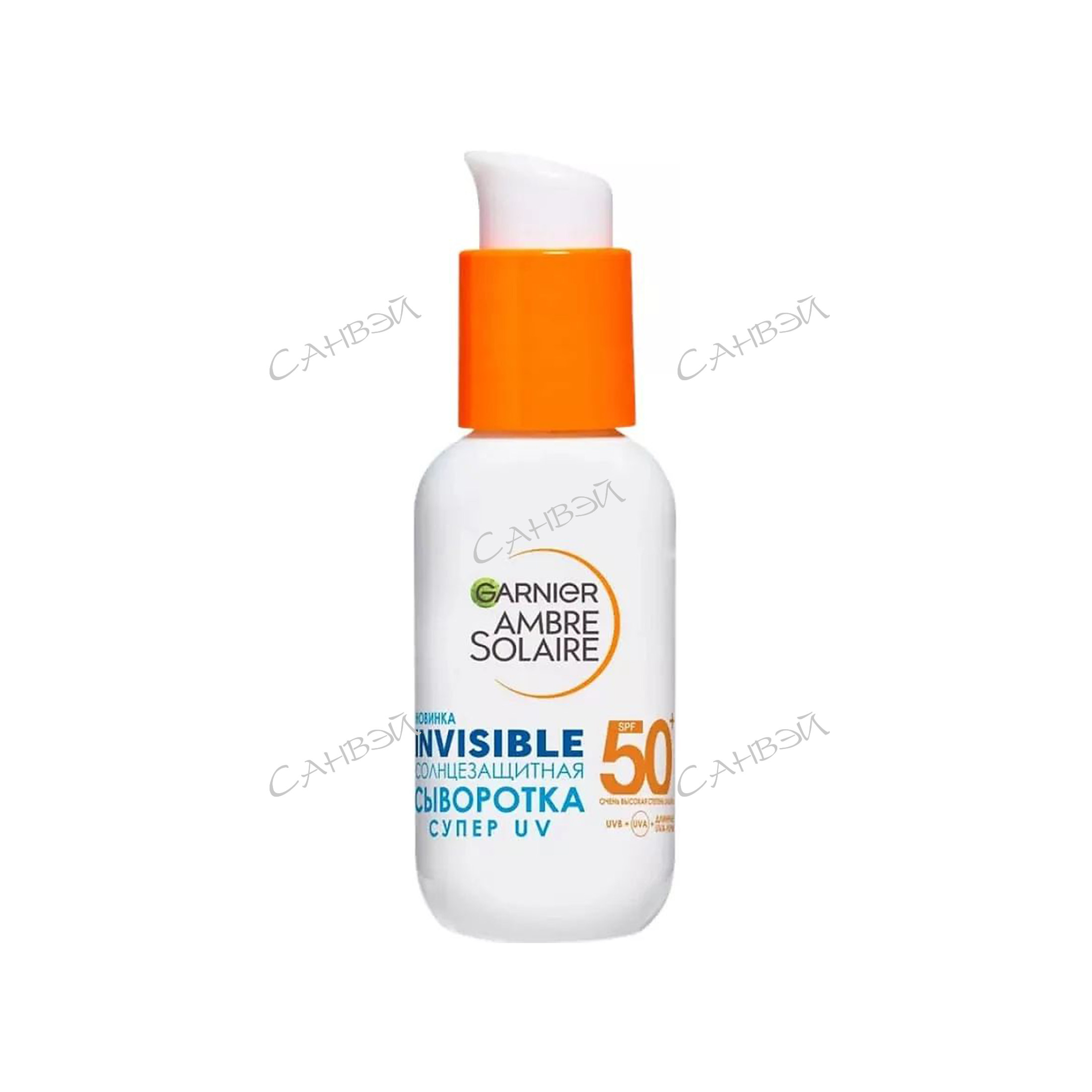 Garnier Амбре Солер солнцезащитная сыворотка для лица "Невидимая Защита" СПФ 50, 30 мл из магазина Санвэй - это солнцезащитная сыворотка СУПЕР UV для ежедневного использования с очень высокой степенью защиты SPF 50+