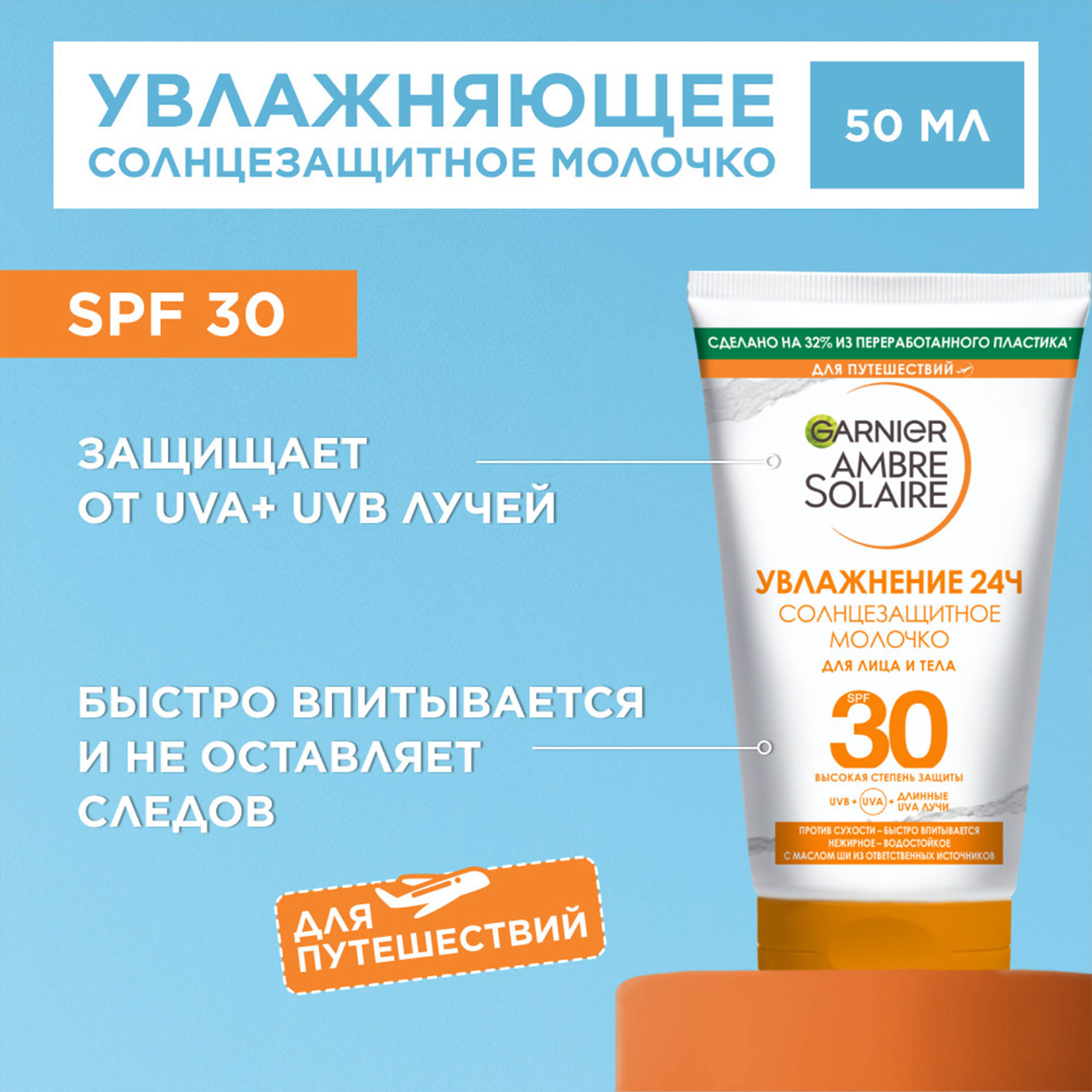Garnier Солнцезащитное молочко для лица и тела Ambre Solaire, SPF 30+ содержит увлажняющую формулу, которая защищает от UVA + UVB-лучей и сухости для гладкой и шелковистой кожи. Формула, обогащенная маслом ши из ответственных источников. Легкая текстура быстро впитывается. Нежирное. Водостойкое.