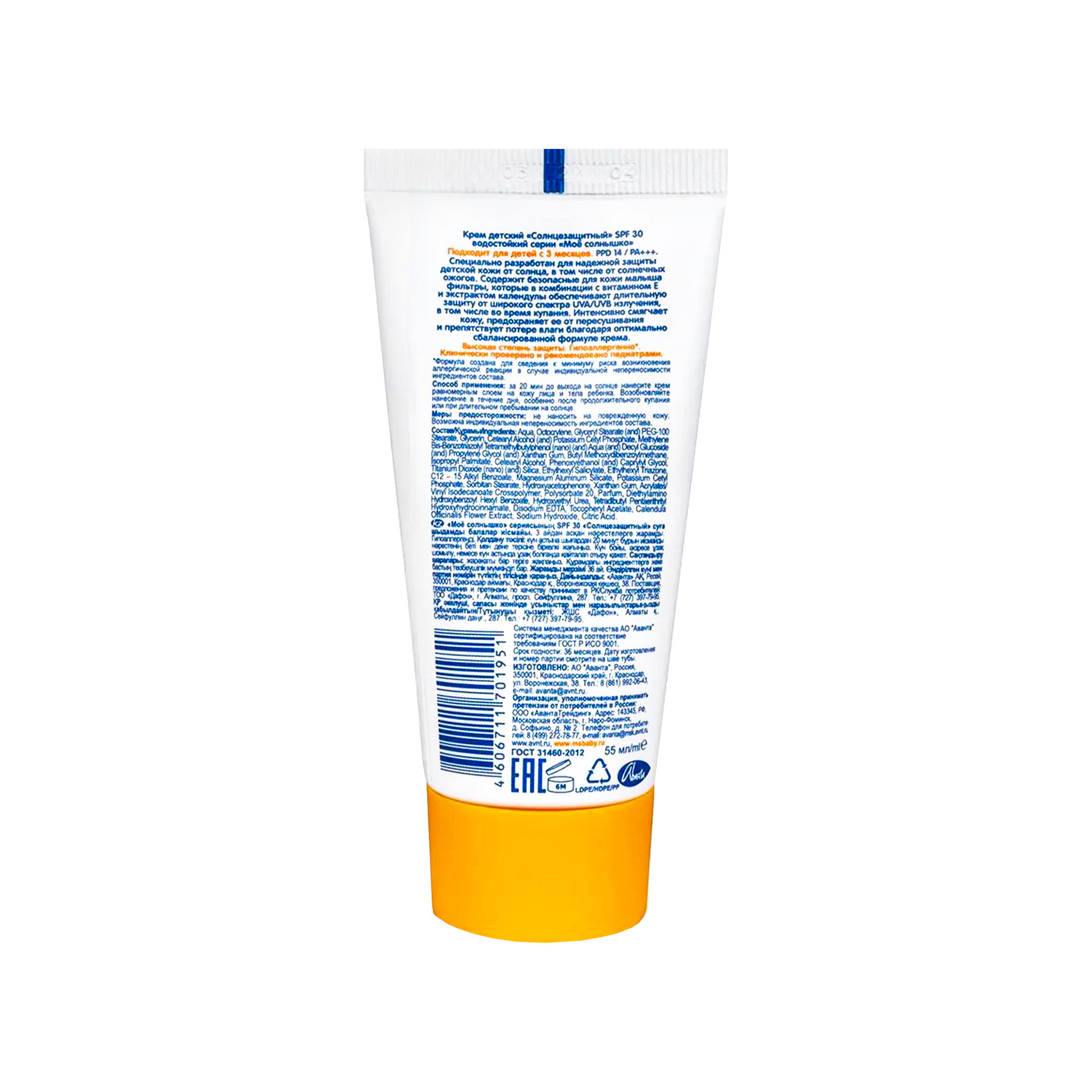 Крем солнцезащитный для лица и тела SPF 30 Моё солнышко водостойкийв магазине Санвэй специально разработан для высокой защиты нежной детской кожи от солнца, в том числе от солнечных ожогов. Подходит для детей с 3 месяцев.