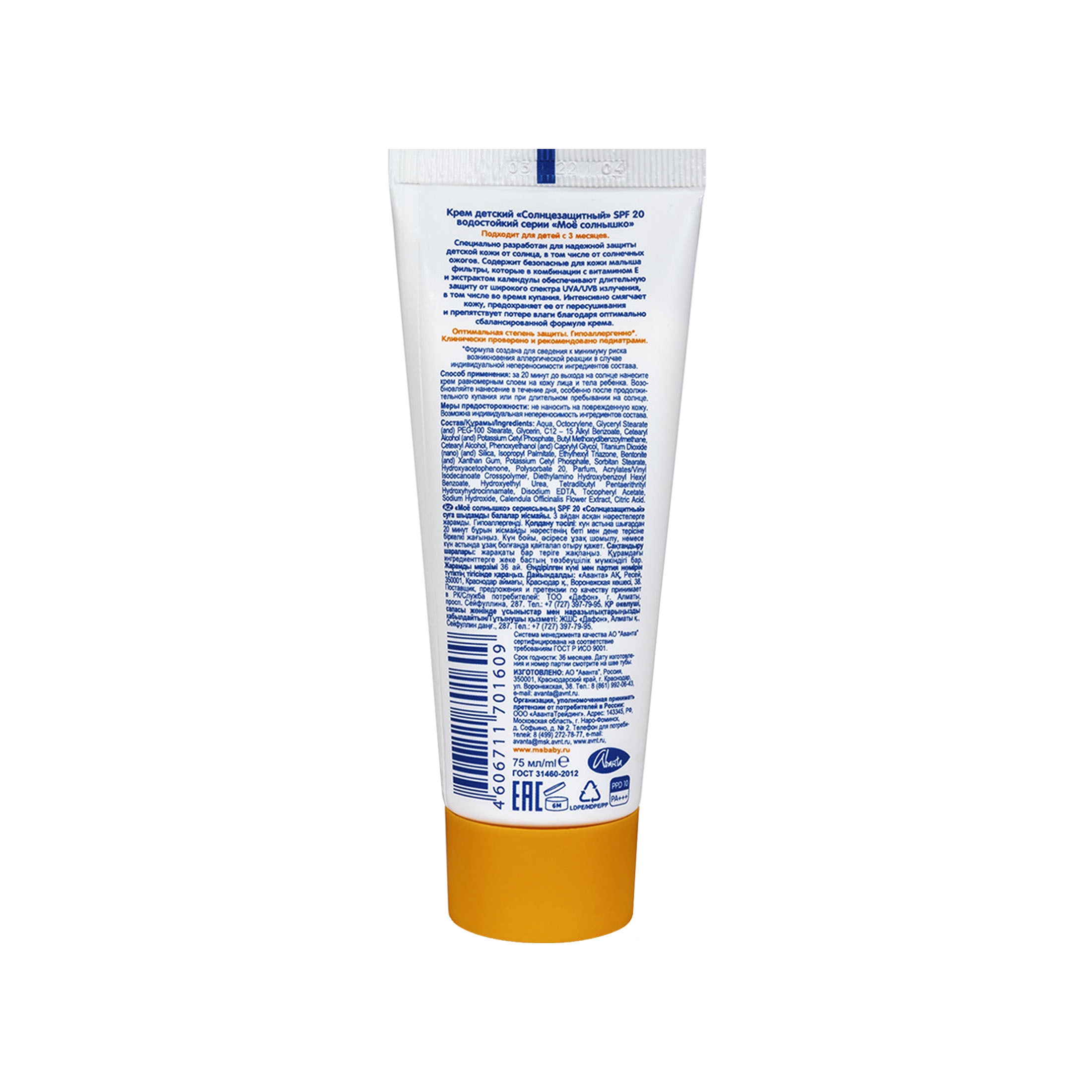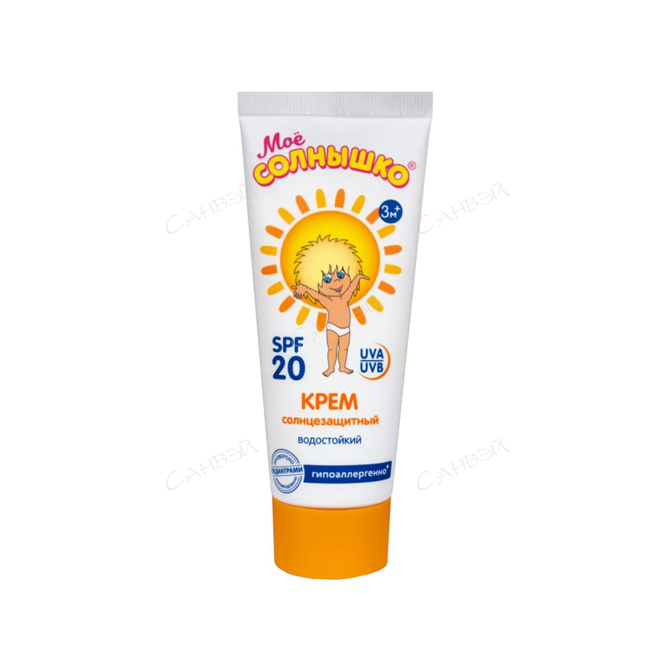 Крем солнцезащитный для лица и тела SPF 20 Моё солнышко водостойкийв магазине Санвэй специально разработан для надежной защиты нежной детской кожи от солнца, в том числе от солнечных ожогов. Подходит для детей с 3 месяцев.