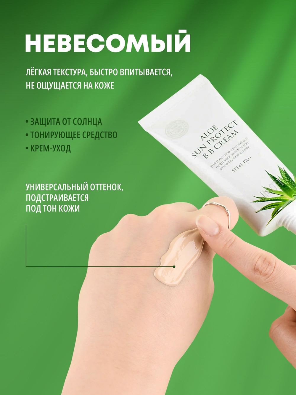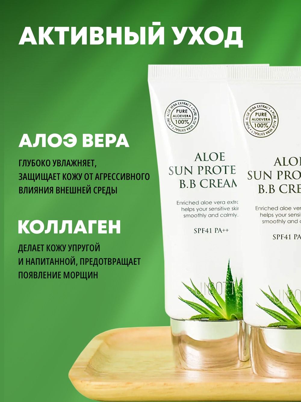 - Экстракт алоэ эффективно выводит токсины, препятствуя старению кожи, способствует заживлению и защите от UF-лучей.
