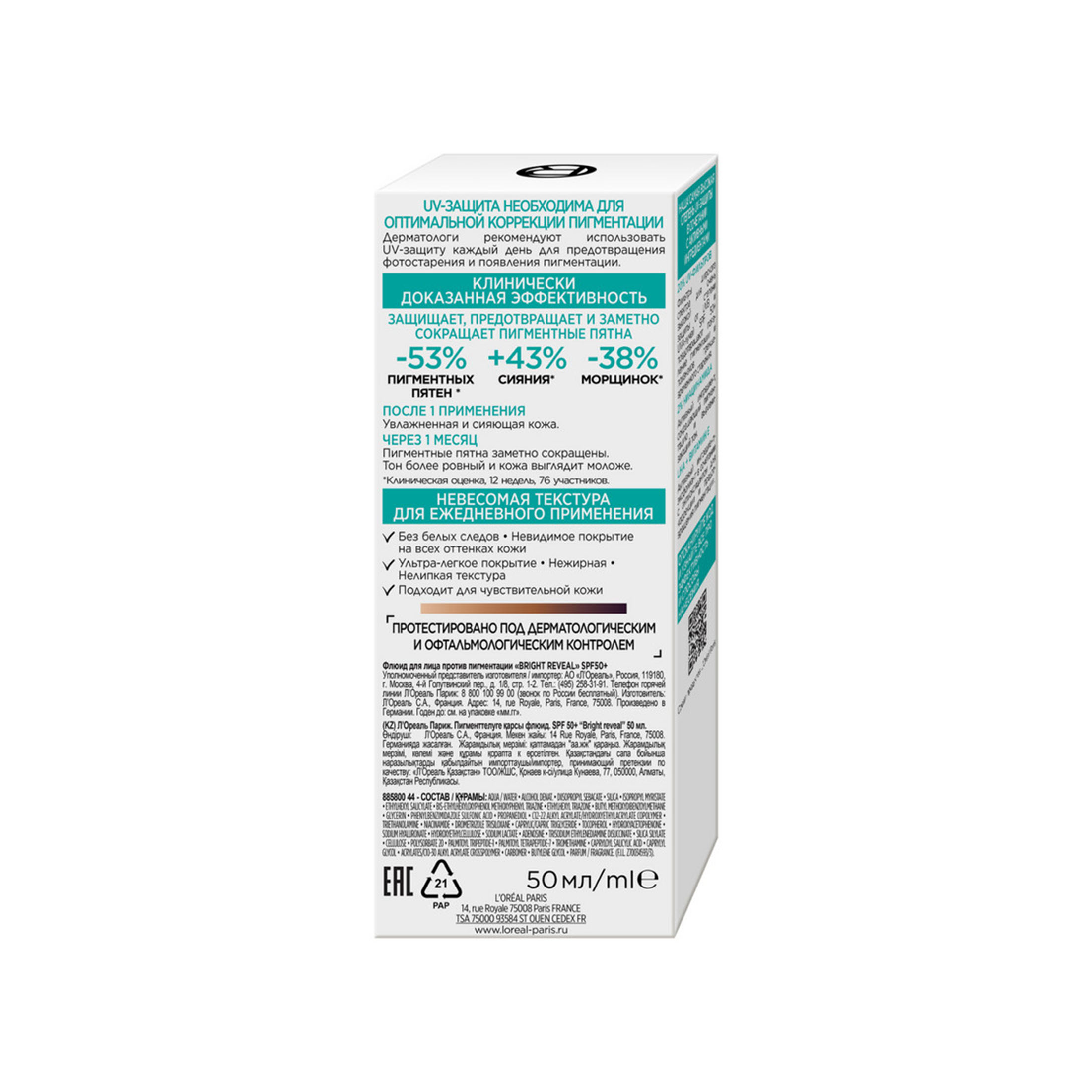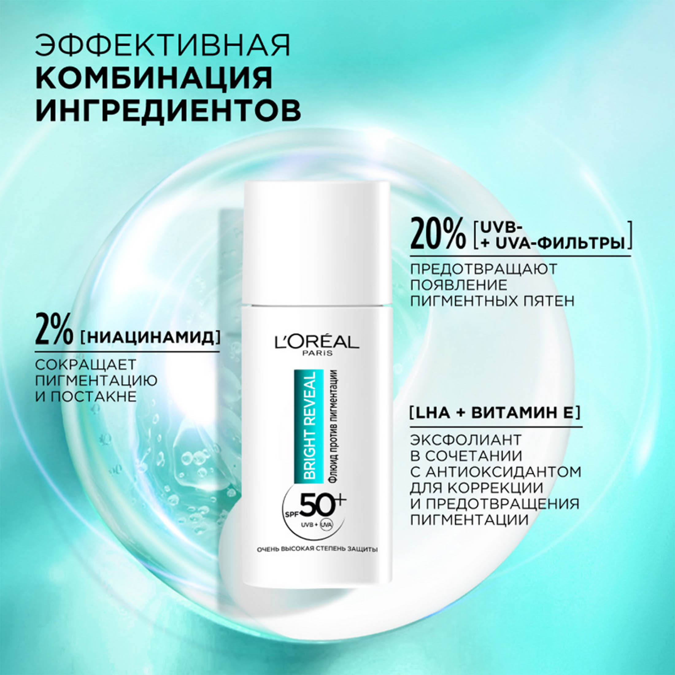 Пятна постакне? Пигментация? Теперь это в прошлом! Дневной флюид против пигментации Bright Reveal SPF 50+ от L’Oréal Paris из магазина Санвэй защищает от UV- излучения, предотвращает и заметно сокращает пигментные пятна.