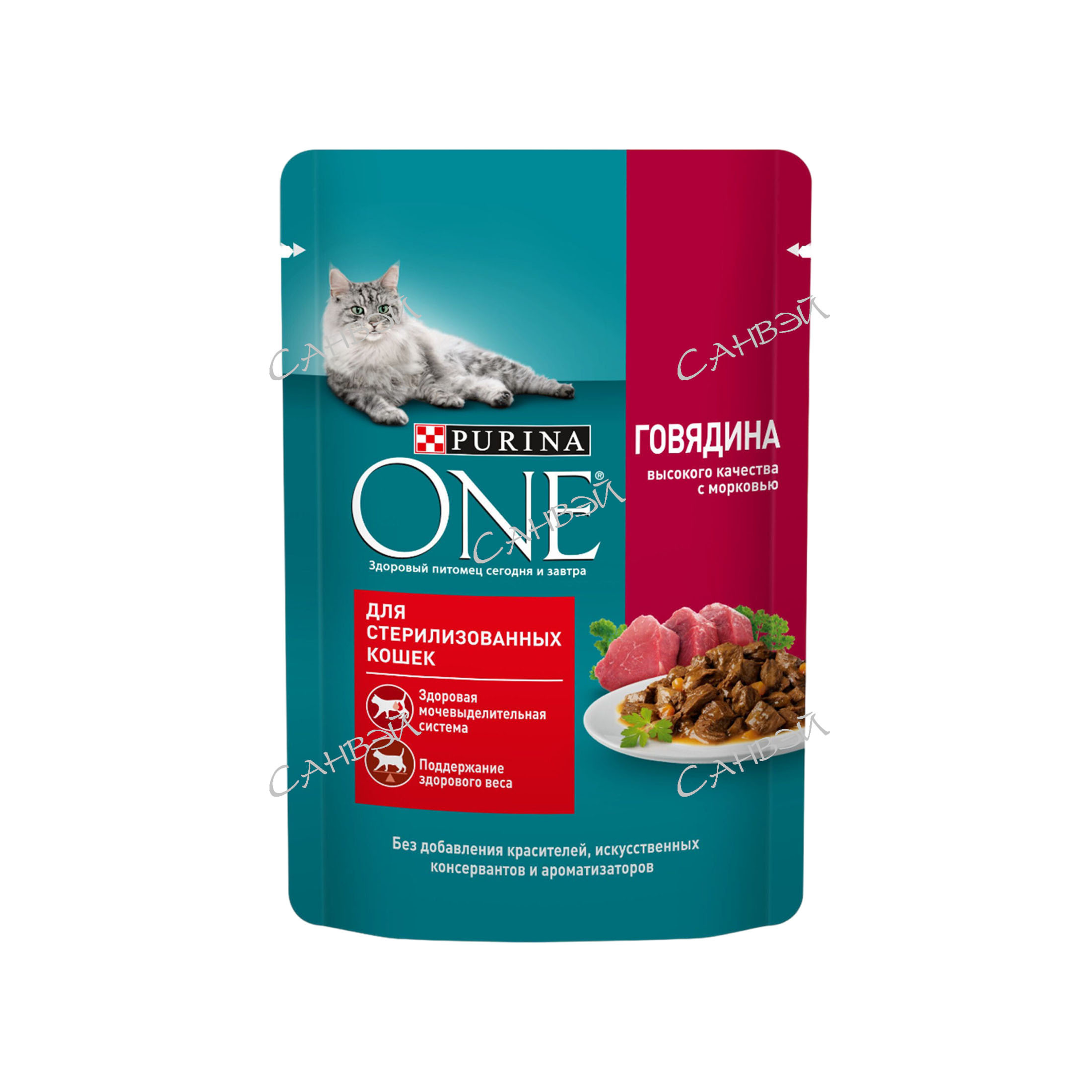 ONE пауч д/стерилизованных кошек говядина в соусе кусочки в соусе 1 шт 75 гр. / 26шт / 12484665 / 588425