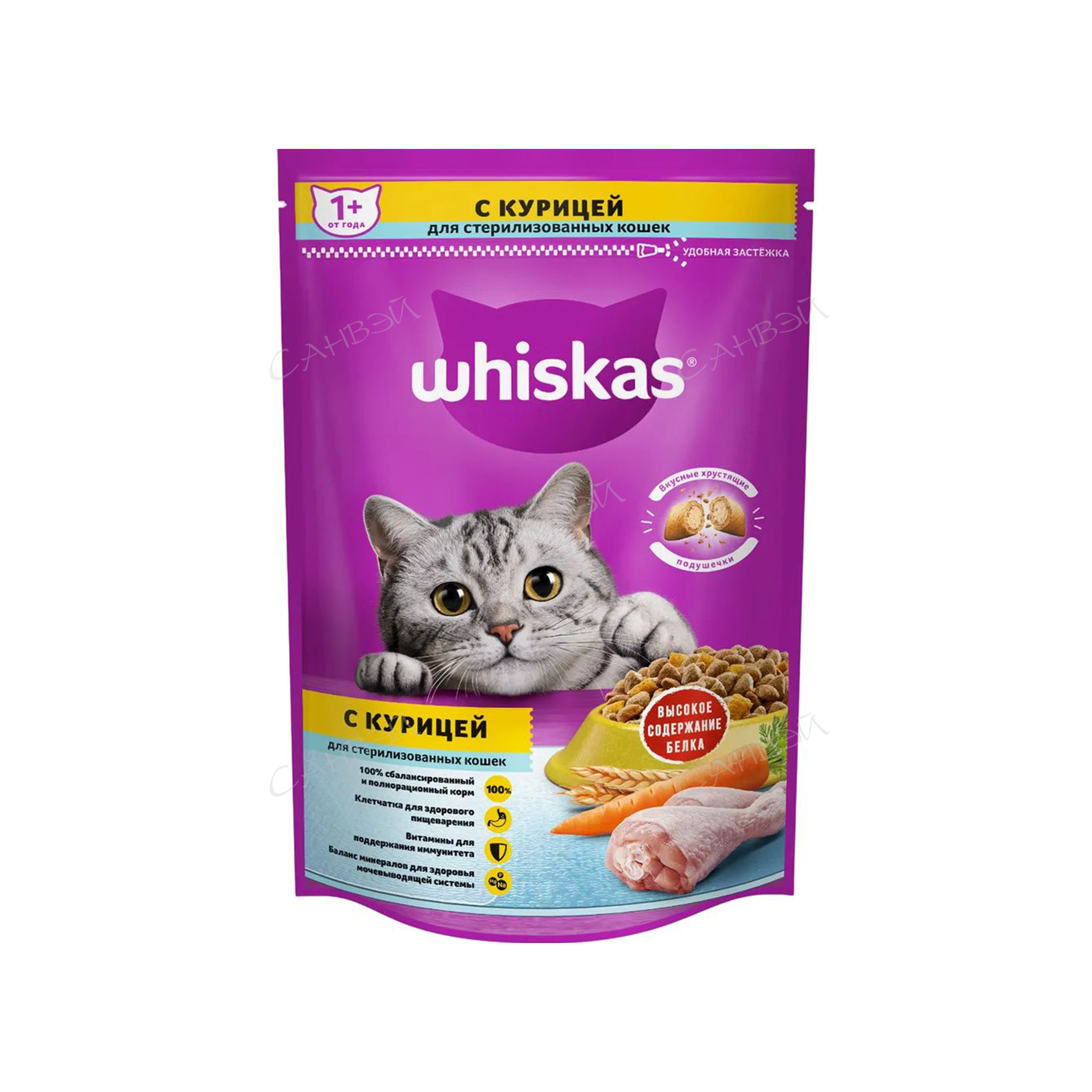 Вискас Корм сухой для стерилизованных кошек Подушечки с курицей 350 гр создан специально, учитывая особые потребности Вашей кошки. Вискас содержит все необходимое, чтобы еда Вашей стерилизованной любимицы была не только вкусной, но и полезной: