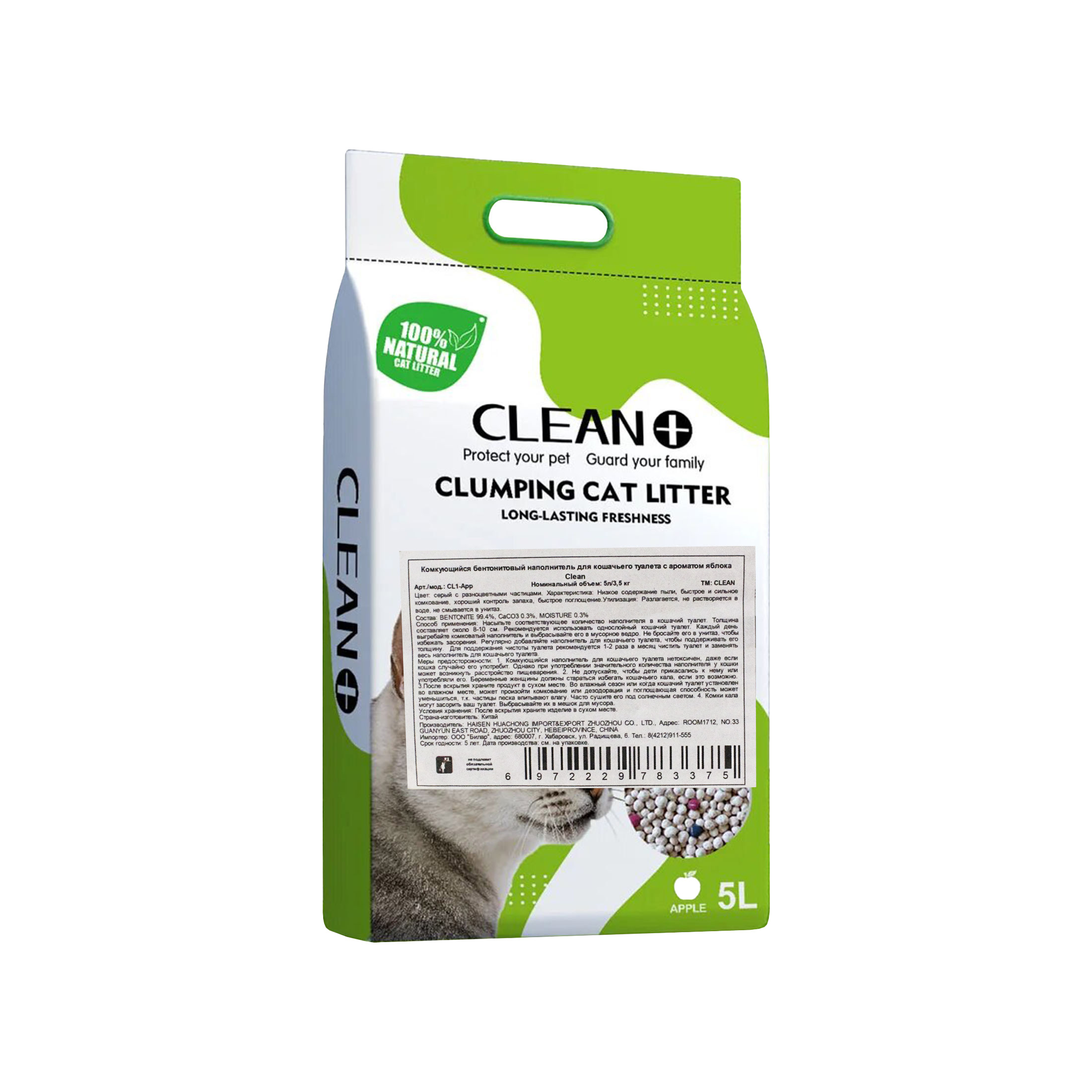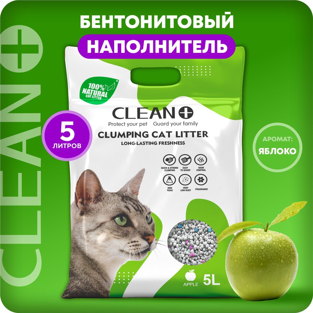 Clean+ наполнитель комкующийся д/кошач.туалетов бентонит яблоко пакет (5л) 3,5 кг 1 уп. / 6шт / CL1-App / 783375