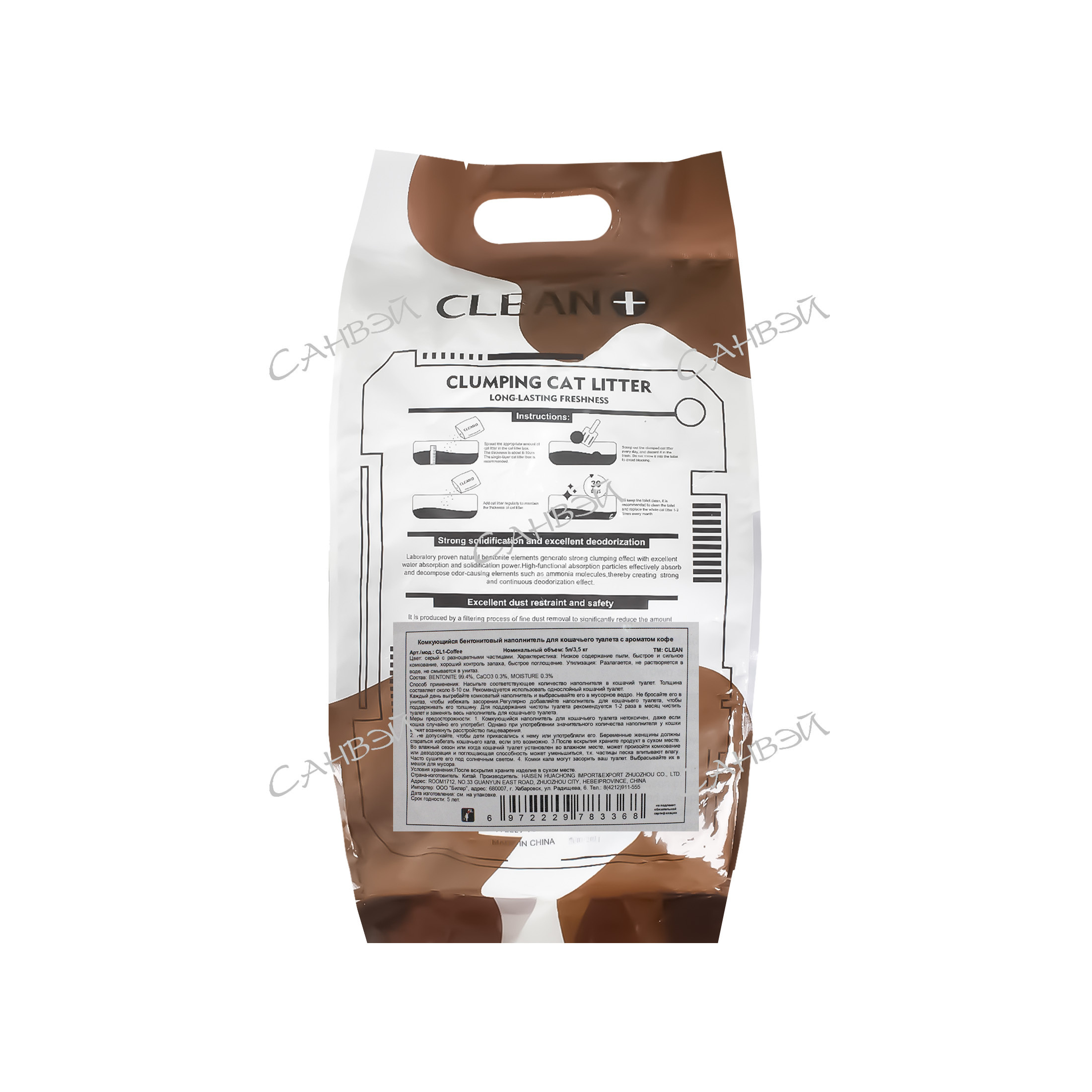 Clean+ наполнитель комкующийся д/кошач.туалетов бентонит кофе пакет (5л) 3,5 кг 1 уп. / 6шт / CL1-Coffee / 783368