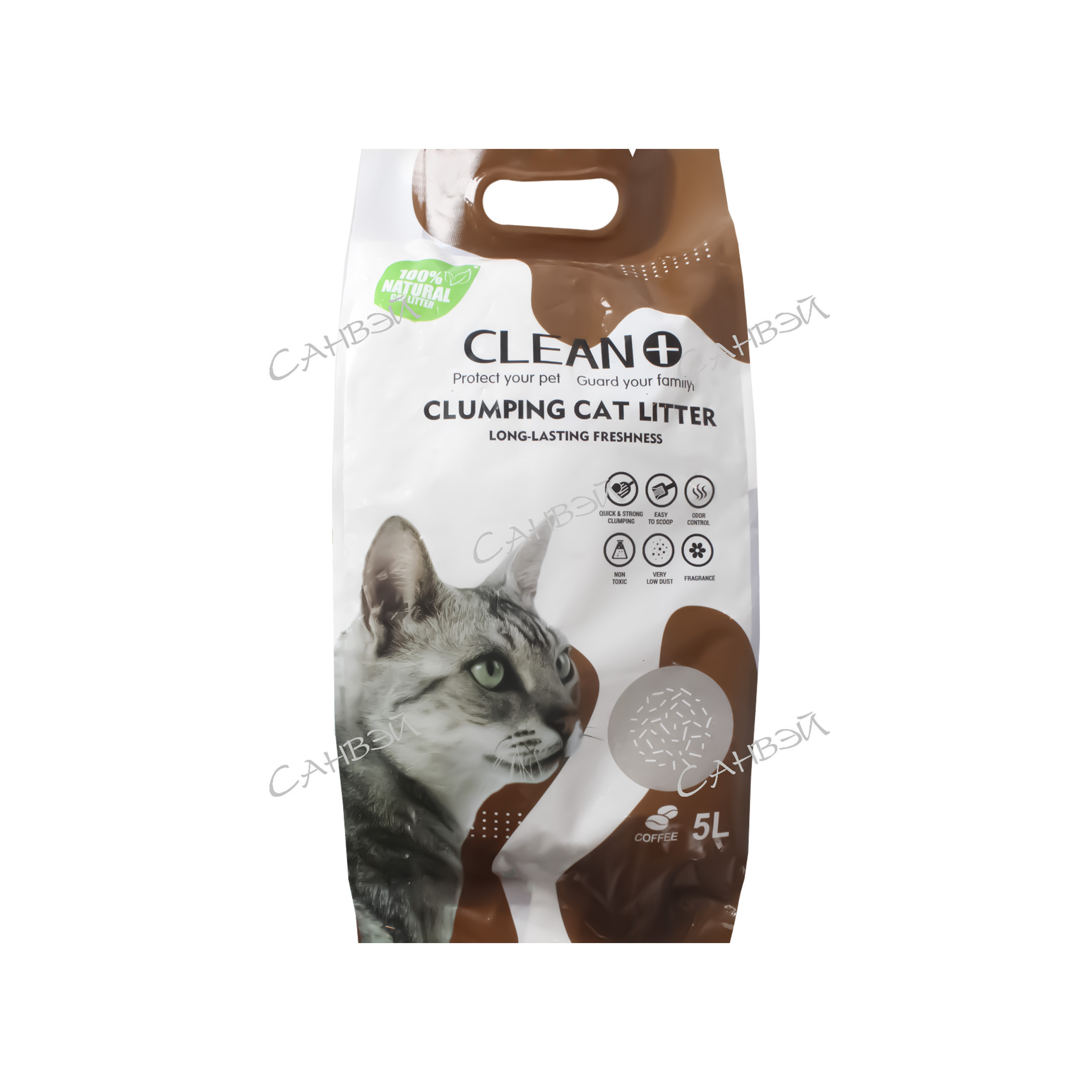 Clean+ Бентонитовый комкующийся наполнитель с ароматом кофе 5 л прост в использовании и не требует специального приучения кота к лотку.