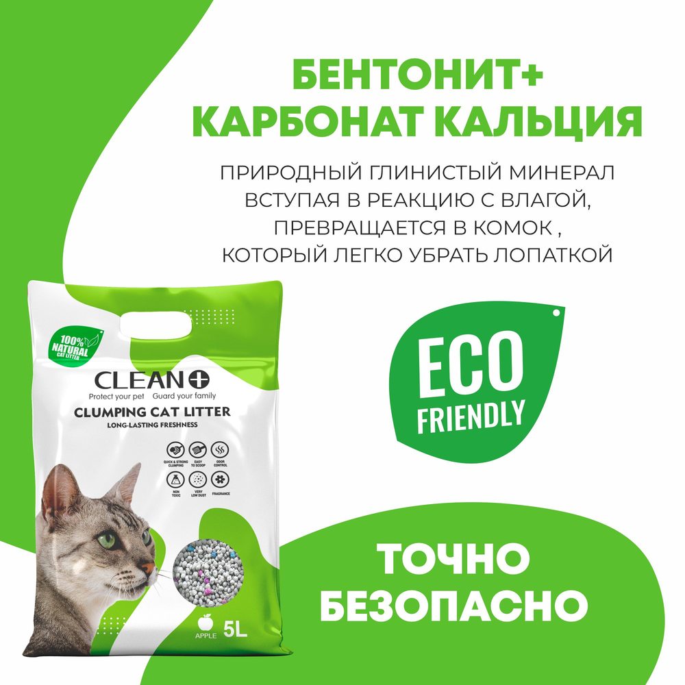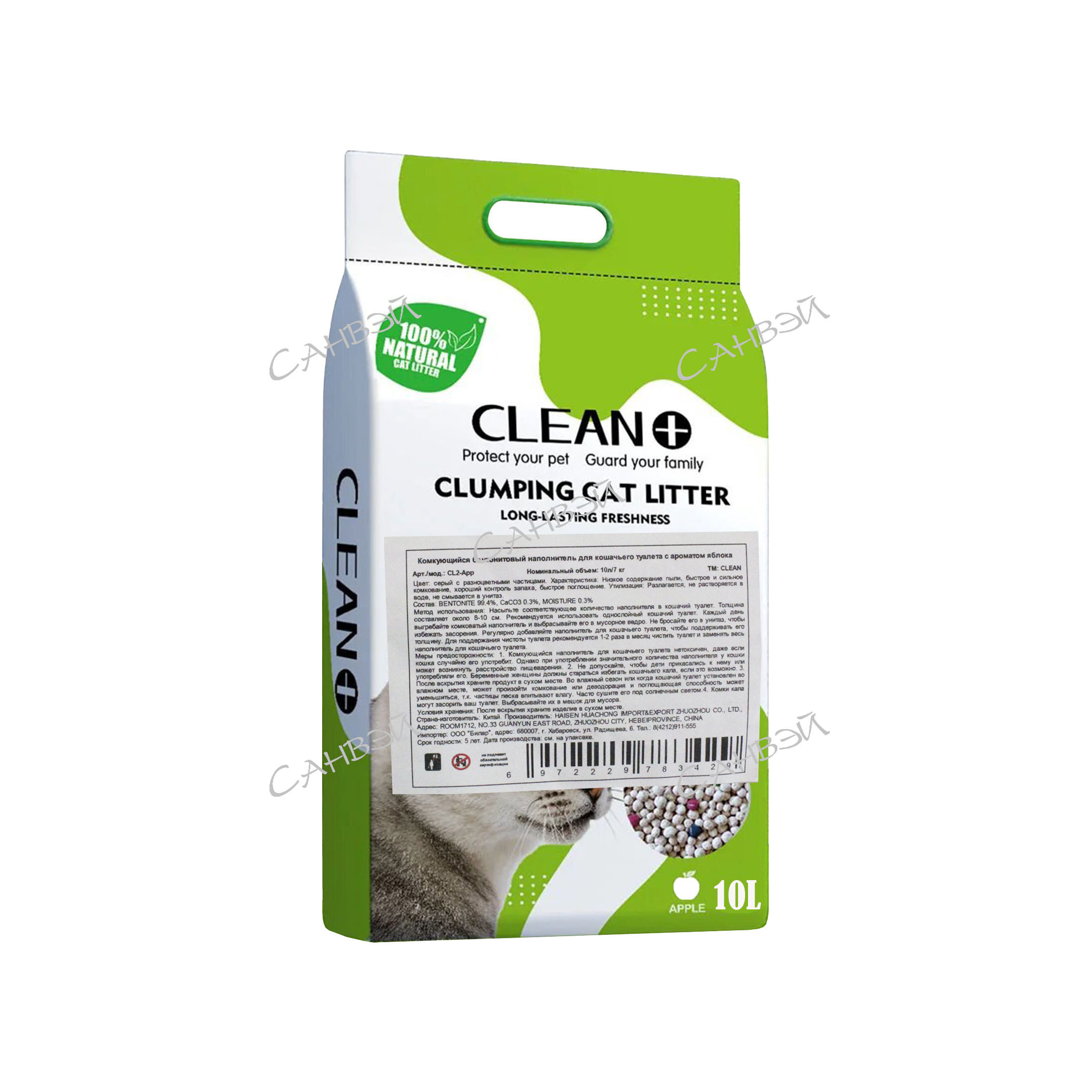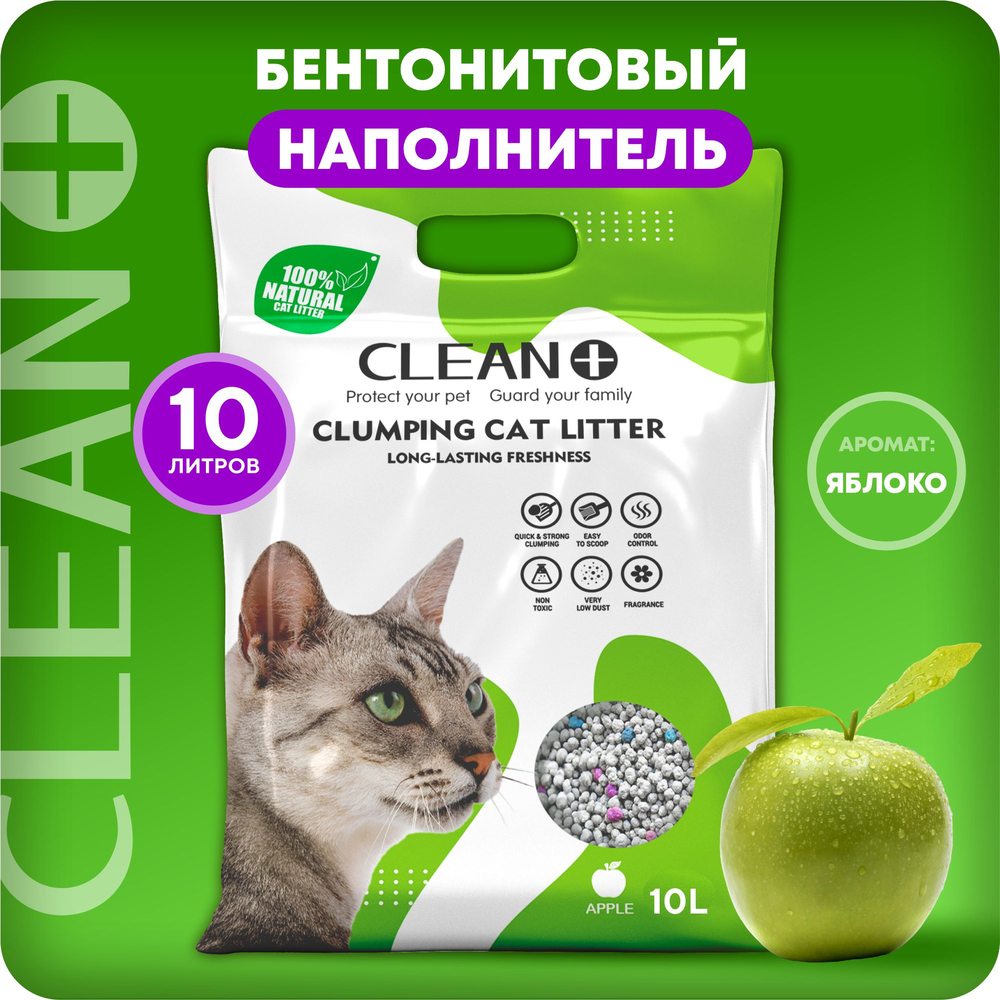 Clean+ наполнитель комкующийся д/кошач.туалетов бентонит яблоко пакет (10л) 7 кг 1 уп. / 2шт / CL2-App / 783429