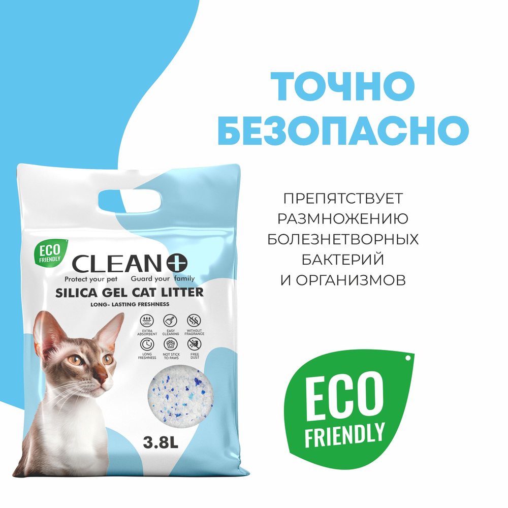 Clean+ Наполнитель силикагелевый для кошачьего туалета без запаха 3,8 л - предназначен для обеспечения гигиены в кошачьем туалете.