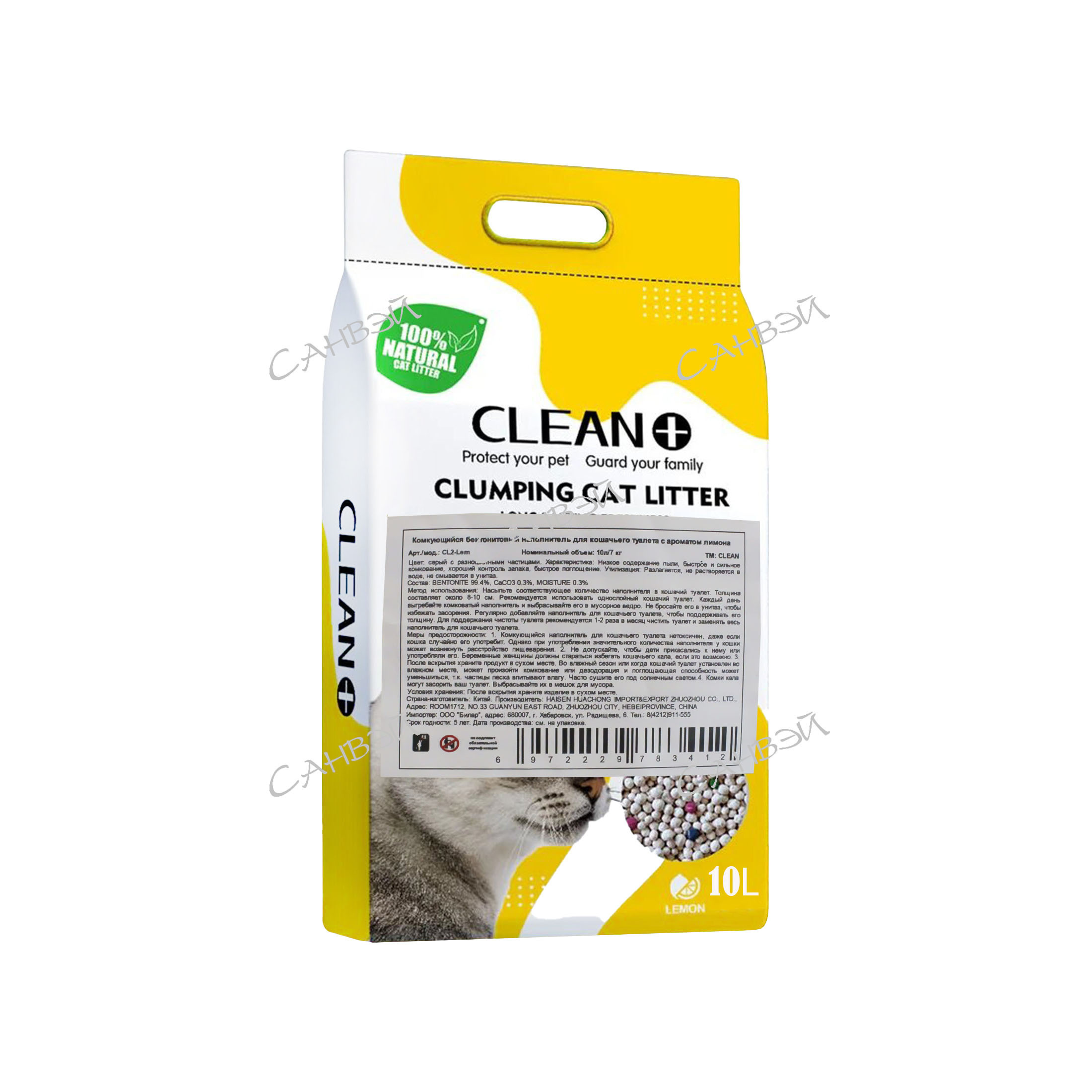 Clean+ наполнитель комкующийся д/кошач.туалетов бентонит лимон пакет (10л) 7 кг 1 уп. / 2шт / CL2-Lem / 783412