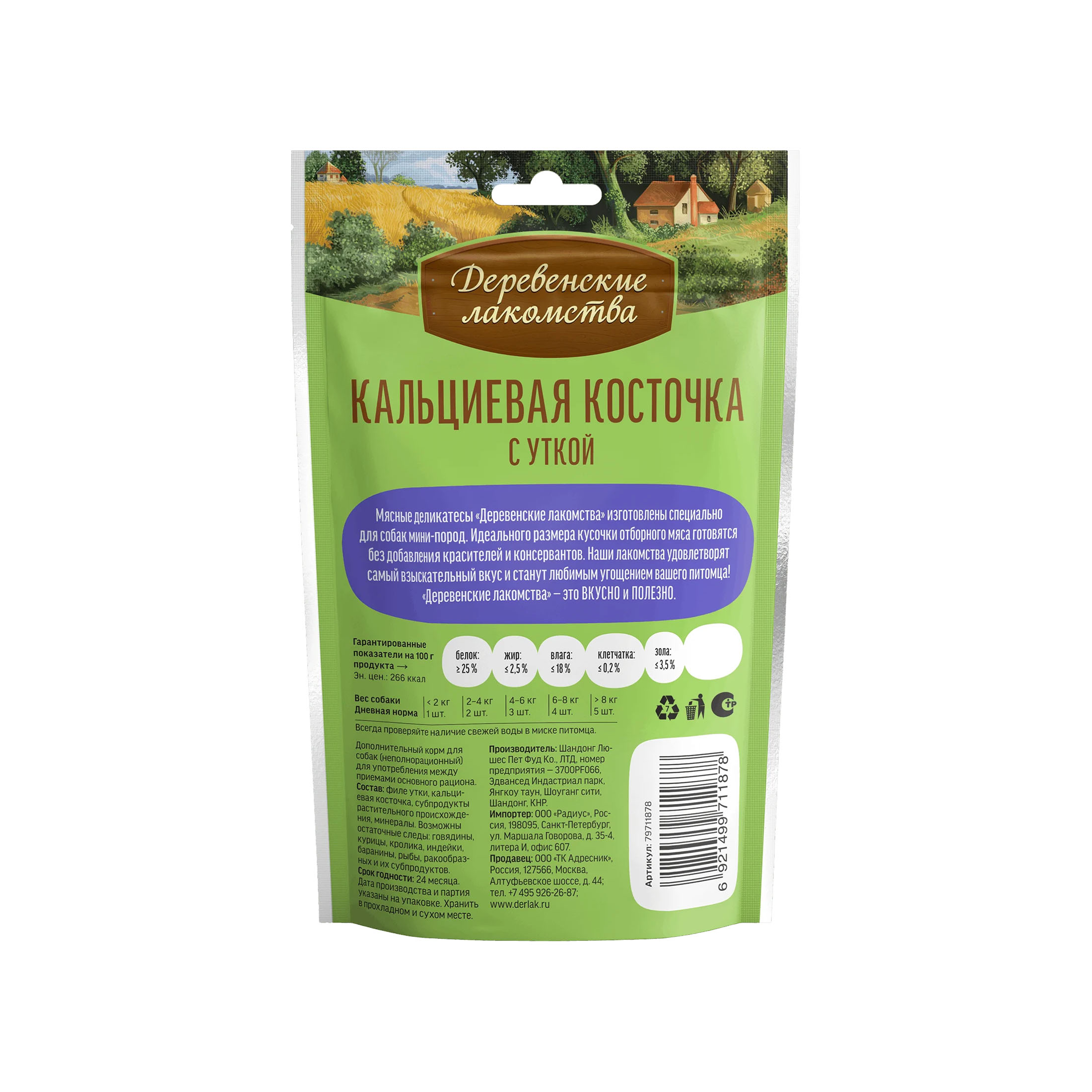 Деревенские лакомства лакомство д/собак д/мелких пород утка косточка 1 шт / 1шт / 711878