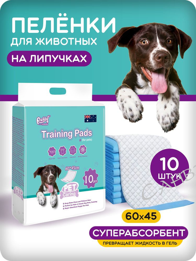 Одноразовые впитывающие пеленки для животных RABBY 60x45см на липучках 10 шт из интернет-магазина Санвэй идеально подходят для ухода за домашними животными. Одноразовые пеленки для животных незаменимы при приучении вашего питомца к туалету, так как отлично впитывают жидкость и устраняют неприятные запахи.