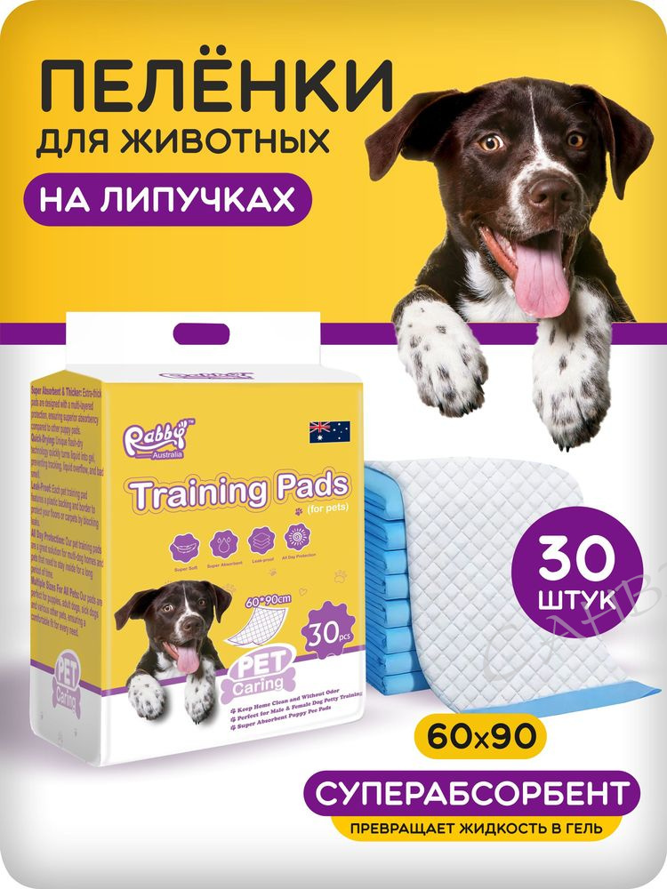 Одноразовые впитывающие пеленки для животных RABBY 60x90 см на липучках 30 шт из интернет-магазина Санвэй идеально подходят для ухода за домашними животными. Одноразовые пеленки для животных незаменимы при приучении вашего питомца к туалету, так как отлично впитывают жидкость и устраняют неприятные запахи.