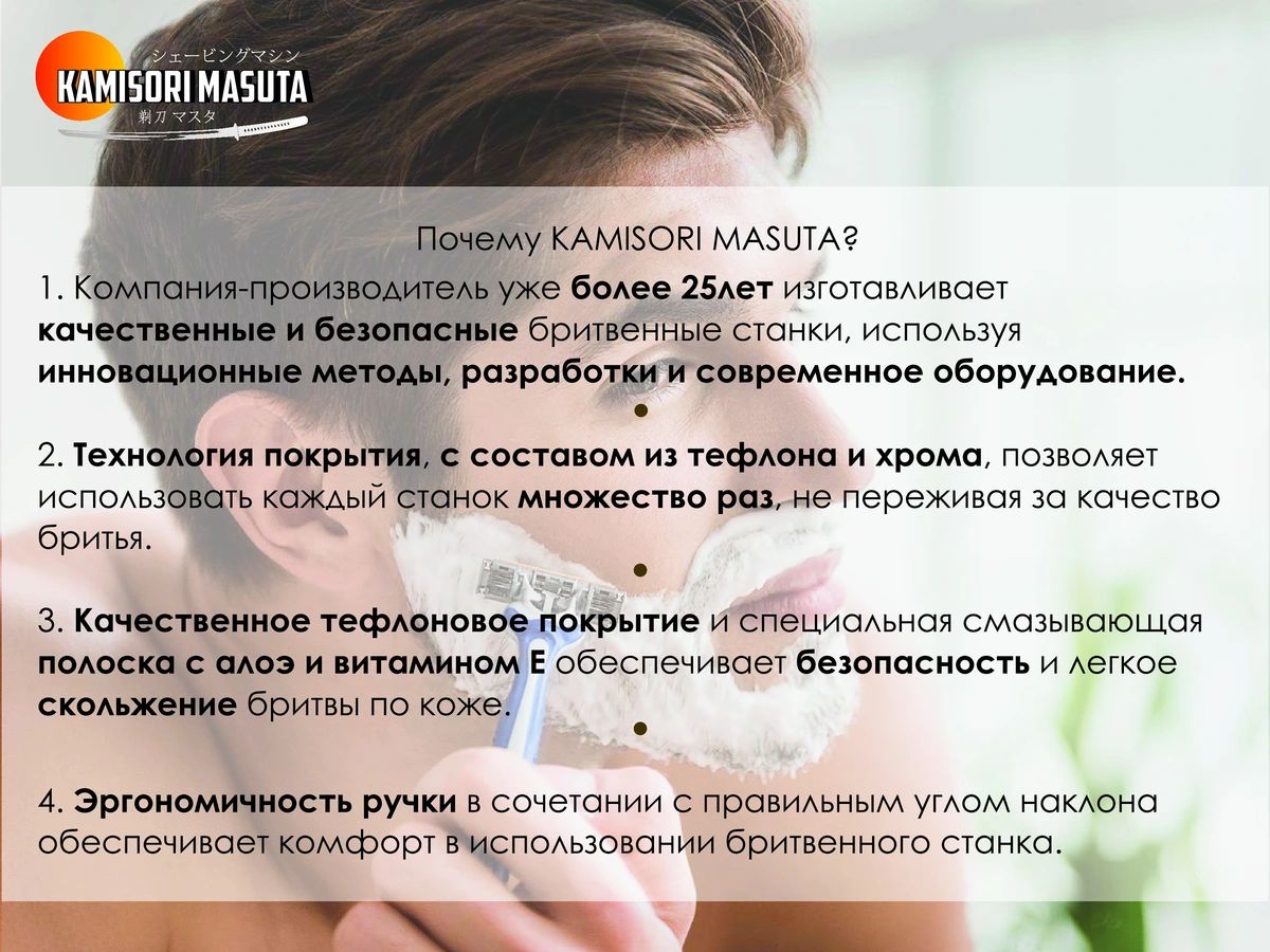 Приобрести качественные бритвенные станки Kamisori Masuta по выгодной цене и со скидкой можно в интернет-магазине Санвэй. У нас также можно подобрать все нобходимые средства для ухода до и после бритья, гели и пенки, увлажняющие средства.